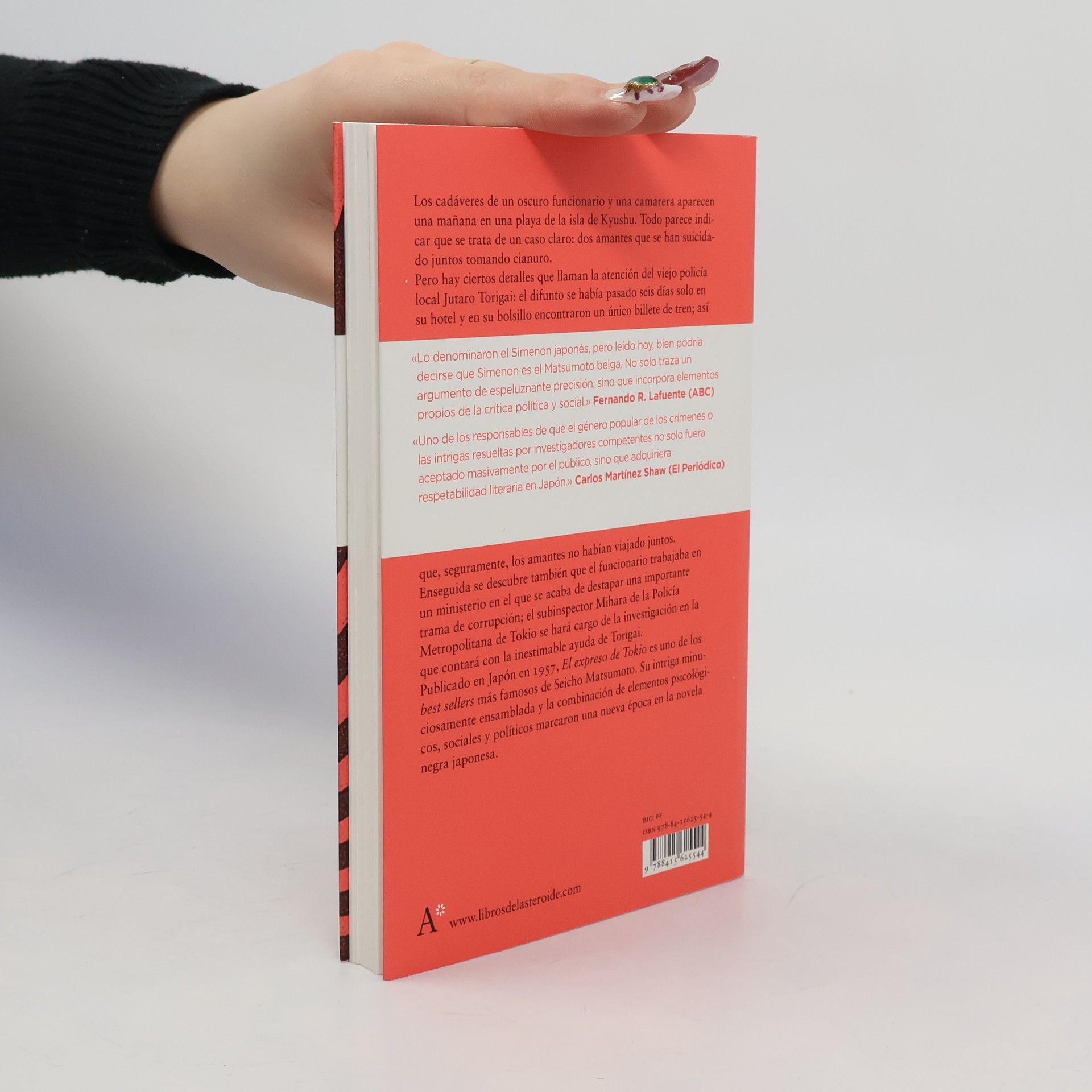 Los cadáveres de un oscuro funcionario y una camarera aparecen una mañana en una playa de la isla de Kyushu. Todo parece indicar que se trata de un caso claro: dos amantes que se han suicidado juntos tomando cianuro. Pero hay ciertos detalles que llaman la atención del viejo policía local Jutaro Torigai: el difunto se había pasado seis días solo en su hotel y en su bolsillo encontraron un único billete de tren; así que, seguramente, los amantes no habían viajado juntos. Enseguida se descubre también que el funcionario trabajaba en un ministerio en el que se acaba de destapar una importante trama de corrupción; el subinspector Mihara de la Policía Metropolitana de Tokio se hará cargo de la investigación en la que contará con la inestimable ayuda de Torigai. Publicado en Japón en 1957, El expreso de Tokio es uno de los best sellers más famosos de Seicho Matsumoto. Su intriga minuciosamente ensamblada y la combinación de elementos psicológicos, sociales y políticos marcaron una nueva época en la novela negra japonesa.