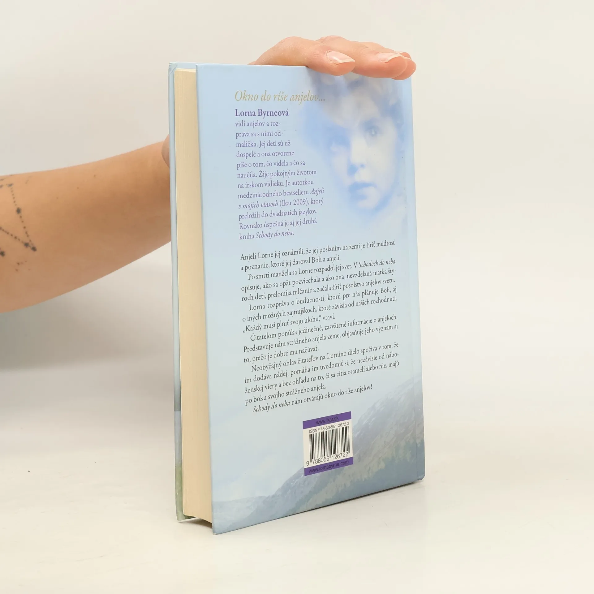 Anjeli Lorne oznámili, že jej poslaním na zemi je šíriť múdrosť a poznanie, ktoré jej daroval Boh a anjeli. Po smrti manžela sa Lorne rozpadol jej svet. V Schodoch do neba opisuje, ako sa opäť pozviechala a ako ona, nevzdelaná matka štyroch detí, prelomila mlčanie a začala šíriť posolstvo anjelov svetu. Lorna rozpráva o budúcnosti, ktorú pre nás plánuje Boh, aj o iných možných zajtrajškoch, ktoré závisia od našich rozhodnutí. „Každý musí plniť svoju úlohu,“ vraví. Čitateľom ponúka jedinečné, zasvätené informácie o anjeloch. Predstavuje nám strážneho anjela Zeme, objasňuje jeho význam aj to, prečo je dobré mu načúvať. Neobyčajný ohlas čitateľov na Lornino dielo spočíva v tom, že im dodáva nádej, pomáha im uvedomiť si, že nezávisle od náboženskej viery a bez ohľadu na to, či sa cítia osamelí alebo nie, majú po boku svojho strážneho anjela. Schody do neba nám otvárajú okno do ríše anjelov!