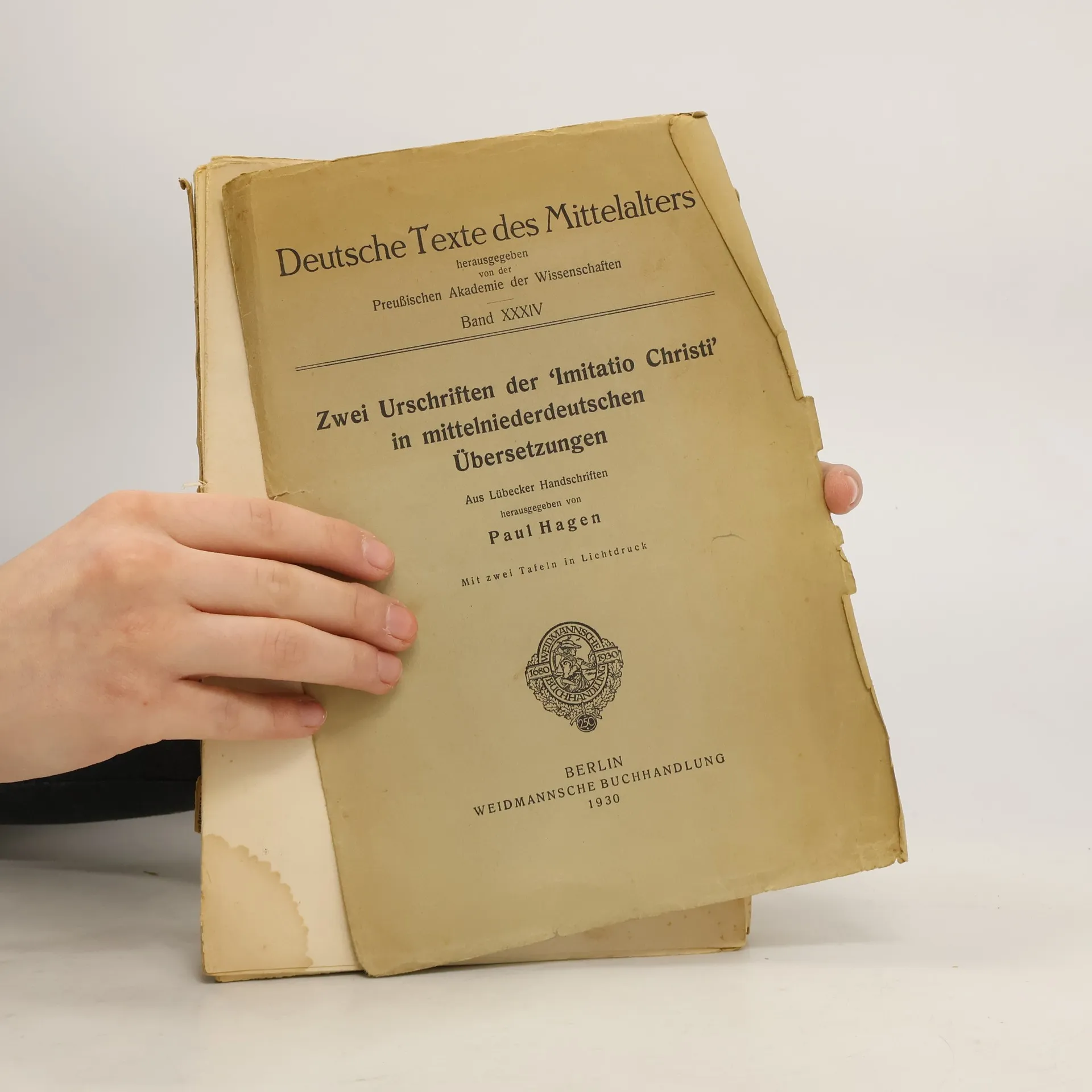 Zwei Urschriften der 'Imitatio Christi' in mittelniederdeutschen übersetzungen aus Lübecker Handschriften, Paul Hagen