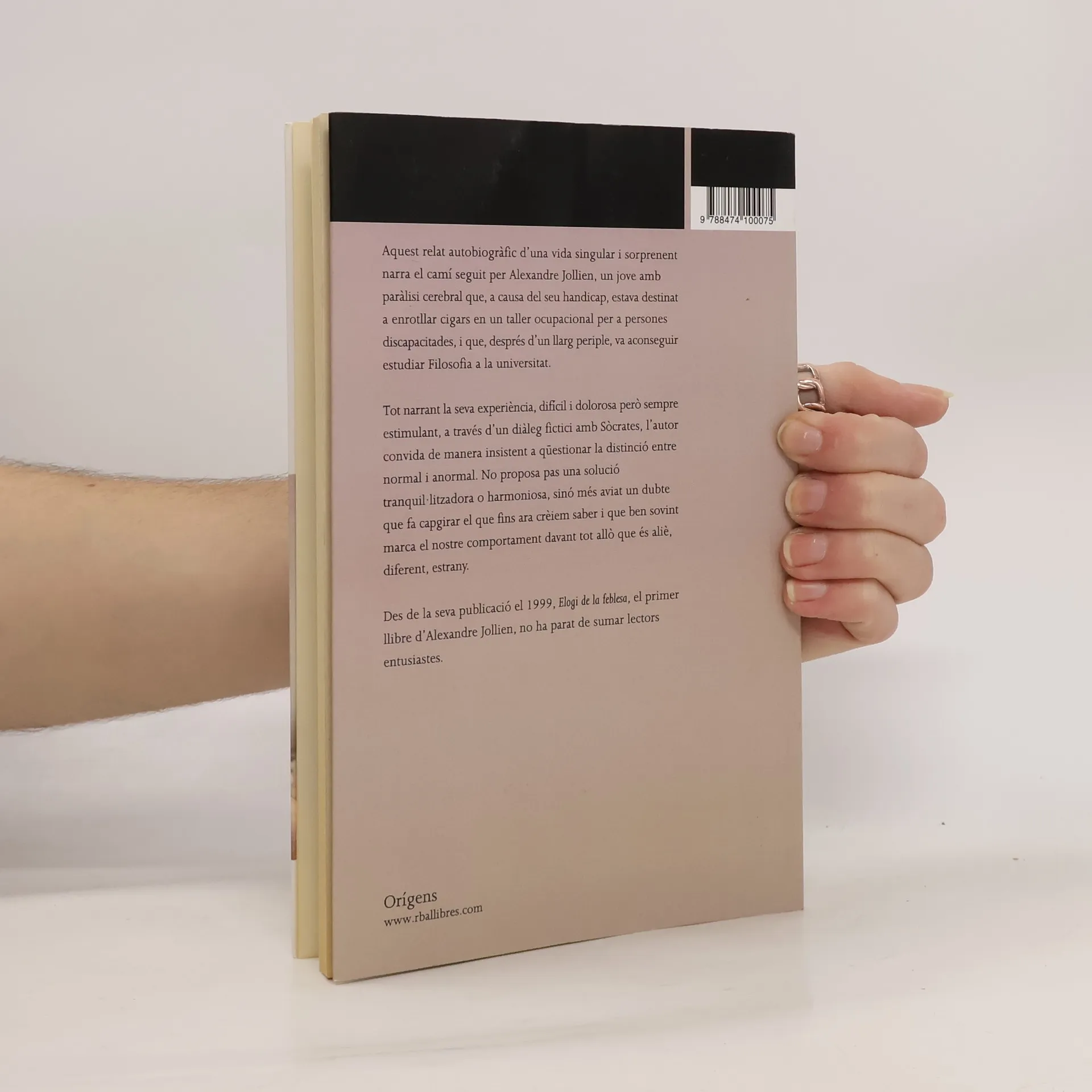 Aquest relat autobiogràfic d’una vida singular i sorprenent narra el camí seguit per Alexandre Jollien, un jove amb paràlisi cerebral que, a causa del seu handicap, estava destinat a enrotllar cigars en un taller ocupacional per a persones discapacitades, i que, després d’un llarg periple, va acons eguir estudiar Filosofia a la universitat.Tot narrant la seva exeperiència, difícil i dolorosa però sempre estimulant, a través d’un diàleg fictici amb Sòcrates, l’autor convida de manera insistent a qüestionar la distinció entre normal i anormal. No proposa pas una solució tranquillitzadora o harmoniosa, sinó més aviat un dubte que fa capgirar el que fins ara crèiem saber i que ben sovint marca el nostre comportament davant tot allò que és aliè, diferent, estrany.