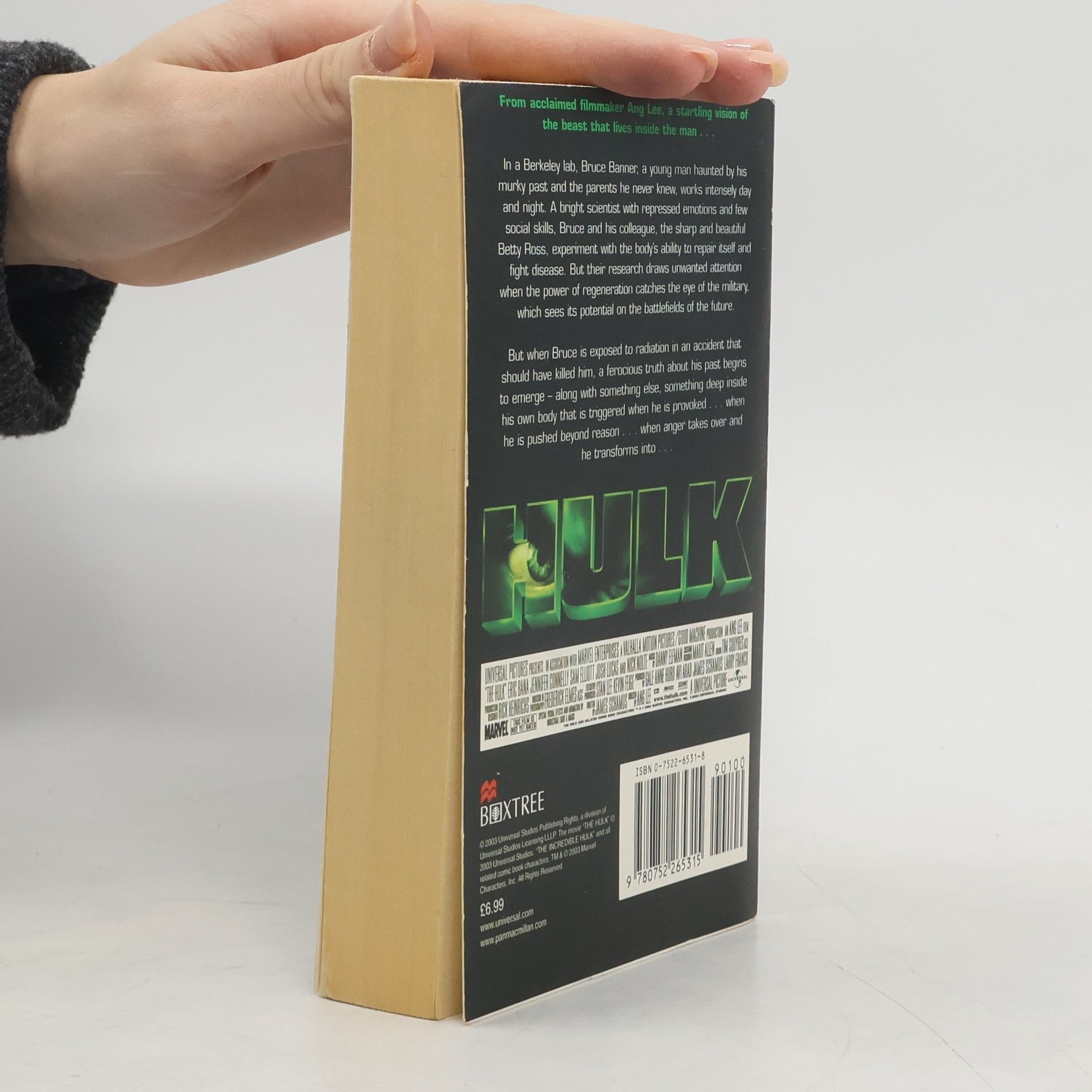 From acclaimed filmmaker Ang Lee, a dark vision of the beast that lives inside the man . . . In a Berkeley lab, Bruce Banner, a young man haunted by his murky past and the parents he never knew, works intensely day and night. A bright scientist with repressed emotions and few social skills, Bruce and his colleague, the sharp and beautiful Betty Ross, experiment with the body’s ability to repair itself and fight disease. But their research draws unwanted attention. For the power of regeneration catches the eye of the military, which sees its potential on the battlefields of the future. But when Bruce is exposed to radiation in an accident that should have killed him, a ferocious truth about his past begins to emerge—along with something else, something deep inside his own body that is triggered when he is provoked . . . when he is pushed beyond reason . . . when anger takes over and he transforms into . . . THE HULK From the Paperback edition.