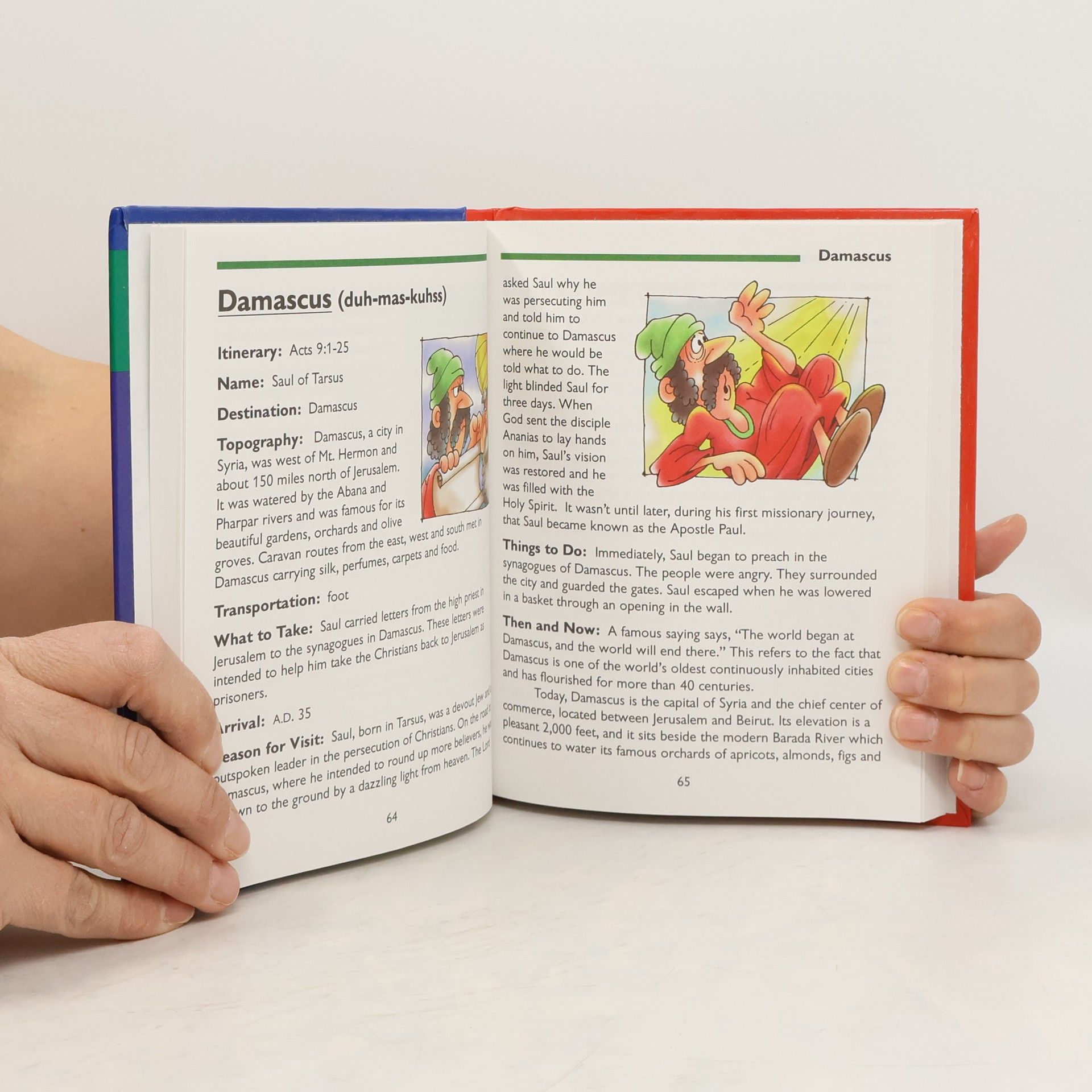An adventure into the ancient world of the Old and New Testaments. Each entry includes a modern itinerary of a Bible passage where the place can be found, the Bible persons involved in the story, how they travelled, the reason for the visit, and a then and now description of the ancient city.
