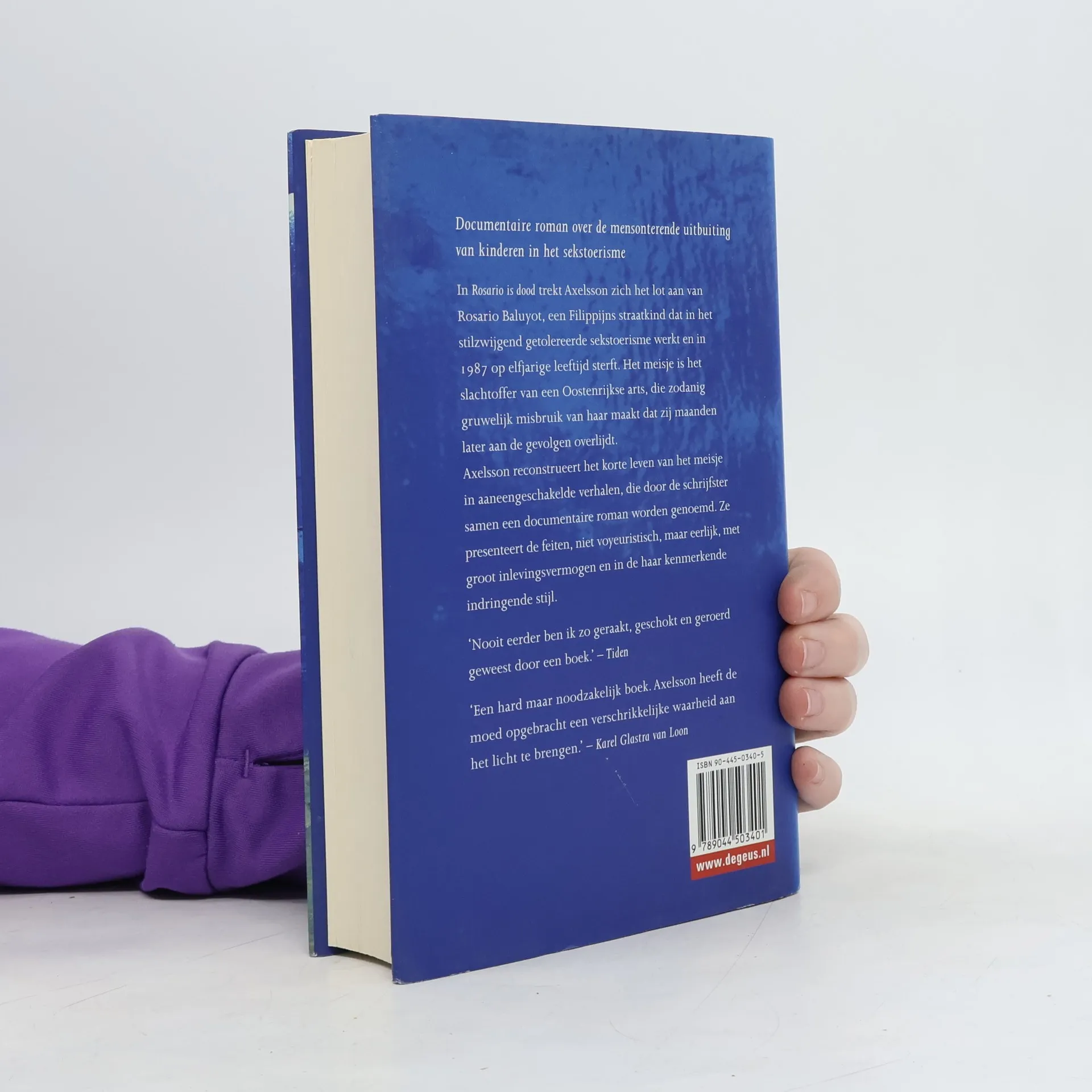 In Rosario is dood trekt Axelsson zich het lot aan van Rosario Baluyot, een Filippijns straatkind dat in het stilzwijgend getolereerde sekstoerisme werkt en in 1987 op elfjarige leeftijd sterft. Het meisje is het slachtoffer van een Oostenrijkse arts, die zodanig gruwelijk misbruik van haar maakt dat zij maanden later aan de gevolgen overlijdt. Axelsson reconstrueert het korte leven van het meisje in aaneengeschakelde verhalen, die door de schrijfster samen een documentaire roman worden genoemd.