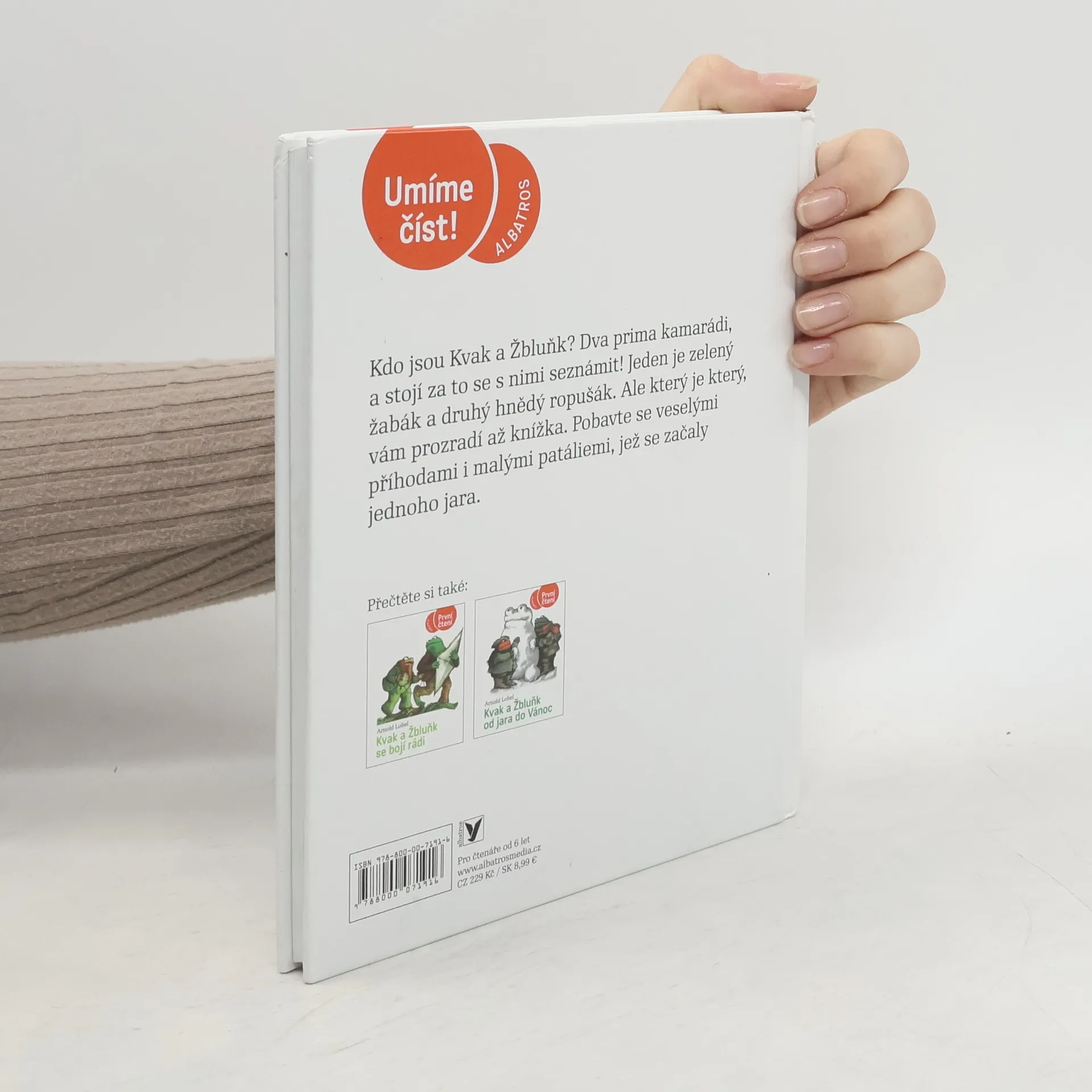 Veselé vyprávění o dvou kamarádech, zeleném žabákovi Kvakovi a hnědém ropušákovi Žbluňkovi. Kniha je vhodná pro začínající čtenáře. Žáby v zimě spí, ale na jaře, když se probudí, zažívají mnoho společných příhod. V knížce se dozvíte například, jak Žbluňk na procházce ztratil knoflík nebo jak Kvak psal Žbluňkovi dopis, aby nebyl smutný, že mu nikdo nepíše.
