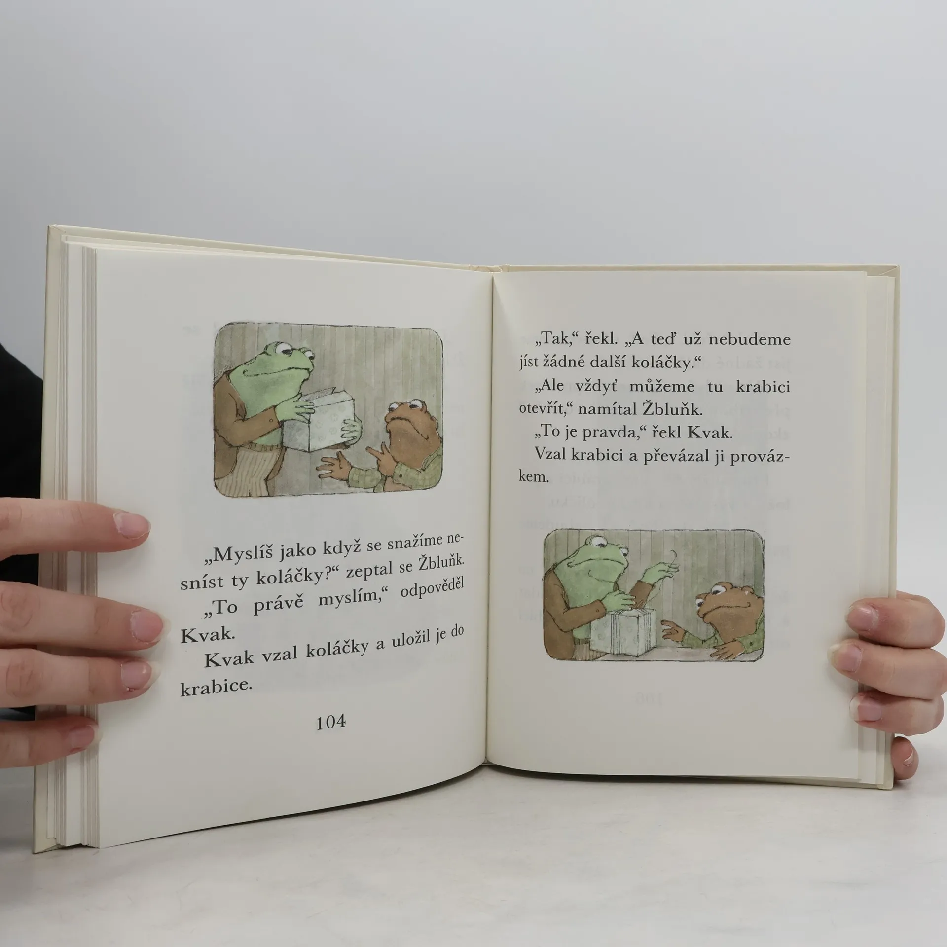 Úsměvné a hřejivé vyprávění o dvou kamarádech, zeleném žabákovi Kvakovi a hnědém ropušákovi Žbluňkovi potěšilo čtenáře nejen v zemi svého vzniku, ale i u nás (včetně dalších pokračování). Kdo by si tedy znovu rád nepřečetl o drobných příhodách a patáliích, které potkaly oba přátelé, když se na jaře probudili ze zimního spánku. Třeba právě o tom, jak hledali ztracený knoflík, jak se koupali v řece, jak pěstovali květiny či jak statečně utíkali před draky a obry. Prolínání fantazie s realitou umocňuje kouzlo této milé knížky, která je přímo stvořená pro začínající čtenáře.