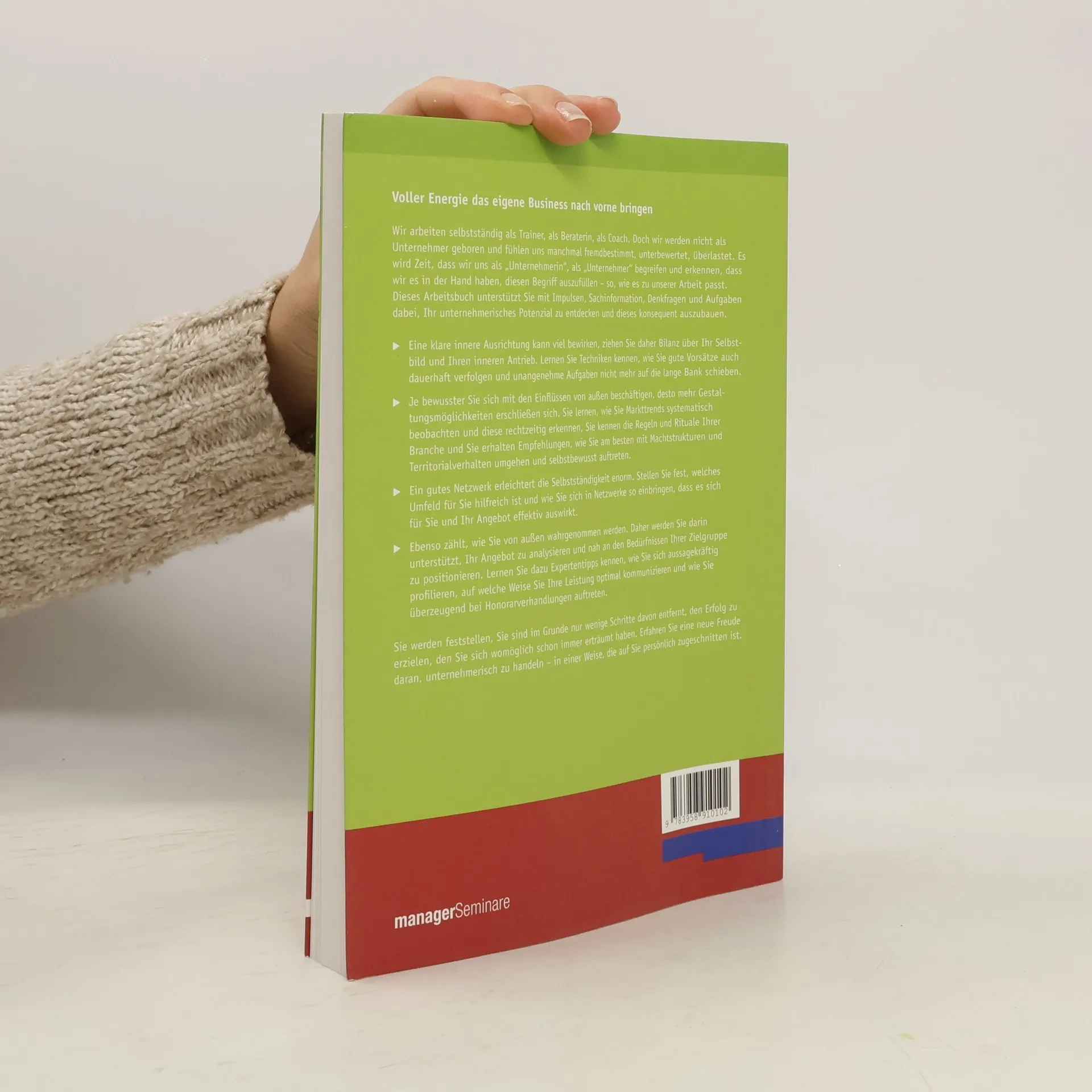 Als Trainer oder Coach arbeiten Sie meist selbstständig oder als Freiberufler. Mit diesem Selbstverständnis stoßen Sie irgendwann an Grenzen, sowohl persönlich als auch unternehmerisch. Mit diesem Buch lernen Sie ein Modell kennen, das Sie dabei unterstützt, als unternehmerische Persönlichkeit zu wachsen. Sie überprüfen Ihr Selbstbild, setzen sich mit äußeren Rahmenbedingungen auseinander, checken Ihre Zugehörigkeiten und beschäftigen sich umfassend mit Ihren Produkten und Ihrem Marketing. So machen Sie mehr aus Ihren Potenzialen, erweitern Ihren Handlungsspielraum und eröffnen sich neue Perspektiven für Ihr unternehmerisches Handeln. Aus welchen Aspekten setzt sich unternehmerisches Selbstverständnis zusammen? Lernen Sie ein Modell kennen, dass einerseits die subjektiven Facetten Ihrer Persönlichkeit 'von innen' ausleuchtet und andererseits untersucht, inwiefern objektiv messbare Rahmenbedingungen Sie von außen beeinflussen. Es identifiziert außerdem die individuellen Bindungen, die Sie als Unternehmer oder Unternehmerin im Außen eingehen. Der vierte Mosaikstein widmet sich Ihrer Außenwirkung, die als sichtbare Kompetenz erkennbar ist. Über diese vier Punkte werden Sie eingehend reflektieren und dabei viel über sich erfahren können und dabei (hoffentlich) Erfolg als Erfüllung erleben: Ihre Persönlichkeit: Was macht Sie aus? Die Rahmenbedingungen: Was hat von außen Einfluss auf Ihr Tun? Bindung und Verbundenheit: Wo fühlen Sie sich zugehörig? Ihre Außenwirkung: Wodurch genau wirken Sie?