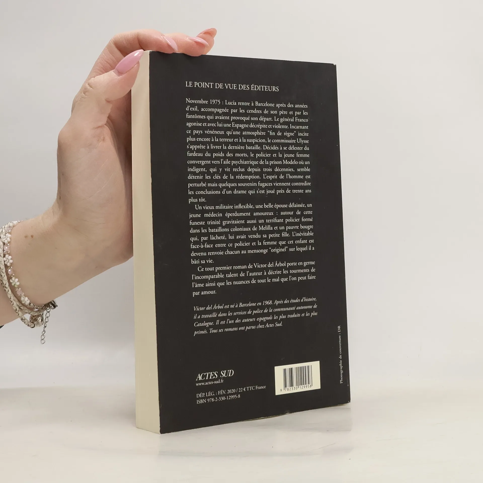 Novembre 1975 : Lucia rentre à Barcelone après des années d'exil, accompagnée par les cendres de son père et par les fantômes qui avaient provoqué son départ. Le général Franco agonise et avec lui une Espagne décrépite et violente. Incarnant ce pays vénéneux qu'une atmosphère "fin de règne" incite plus encore à la terreur et à la suspicion, le commissaire Ulysse s'apprête à livrer la dernière bataille. Décidés à se délester du fardeau du poids des morts, le policier et la jeune femme convergent vers l'aile psychiatrique de la prison Modelo où un indigent, qui y vit reclus depuis trois décennies, semble détenir les clés de la rédemption. L'esprit de l'homme est perturbé mais quelques souvenirs fugaces viennent contredire les conclusions d'un drame qui s'est joué près de trente ans plus tôt. Un vieux militaire inflexible, une belle épouse délaissée, un jeune médecin éperdument amoureux : autour de cette funeste trinité gravitaient aussi un terrifiant policier formé dans les bataillons coloniaux de Melilla et un pauvre bougre qui, par lâcheté, lui avait vendu sa petite fille. L'inévitable face-à-face entre ce policier et la femme que cet enfant est devenu renvoie chacun au mensonge "originel" sur lequel il a bâti sa vie. Ce tout premier roman de Víctor del Arbol porte en germe l'incomparable Sent de l'auteur à décrire les tourments de l'âme ainsi que les nuances de tout le mal que l'on peut faire par amour.