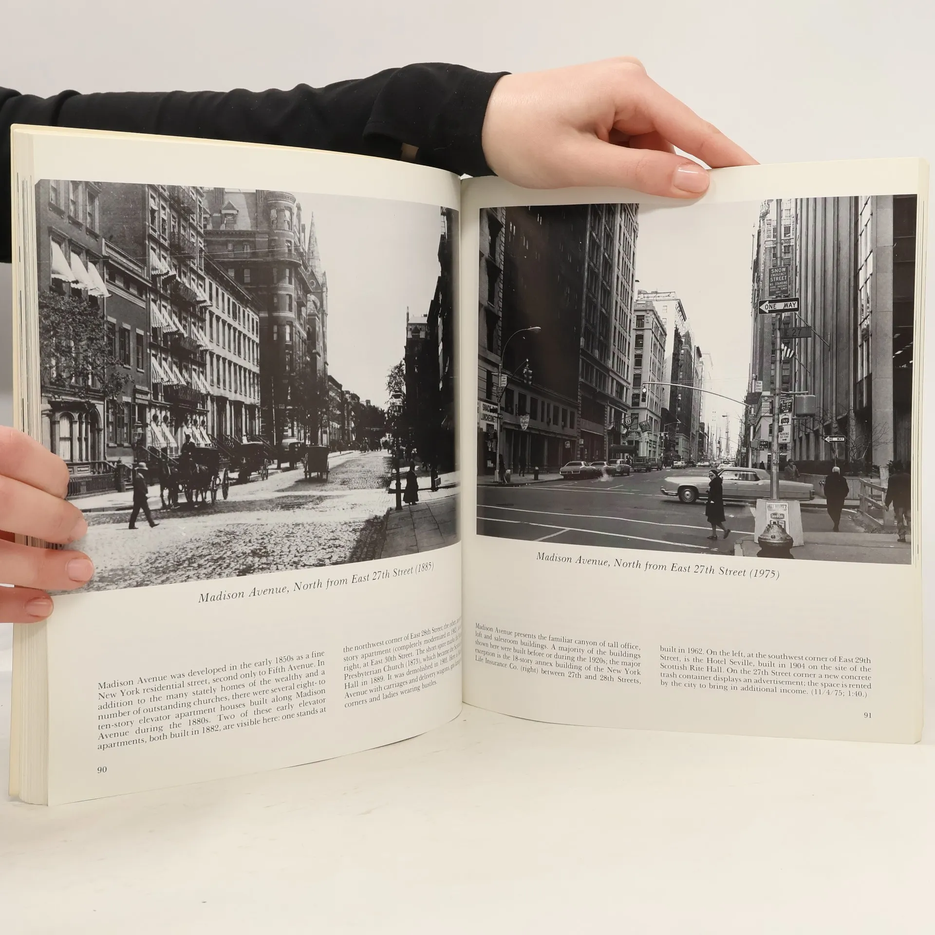 Watch New York change before your 83 early Manhattan sites are set against 83 modern photos taken from same Times Square, Wall Street, Fifth Avenue, many more. Early photographs from 1875 to 1925 contrasted with 1976.