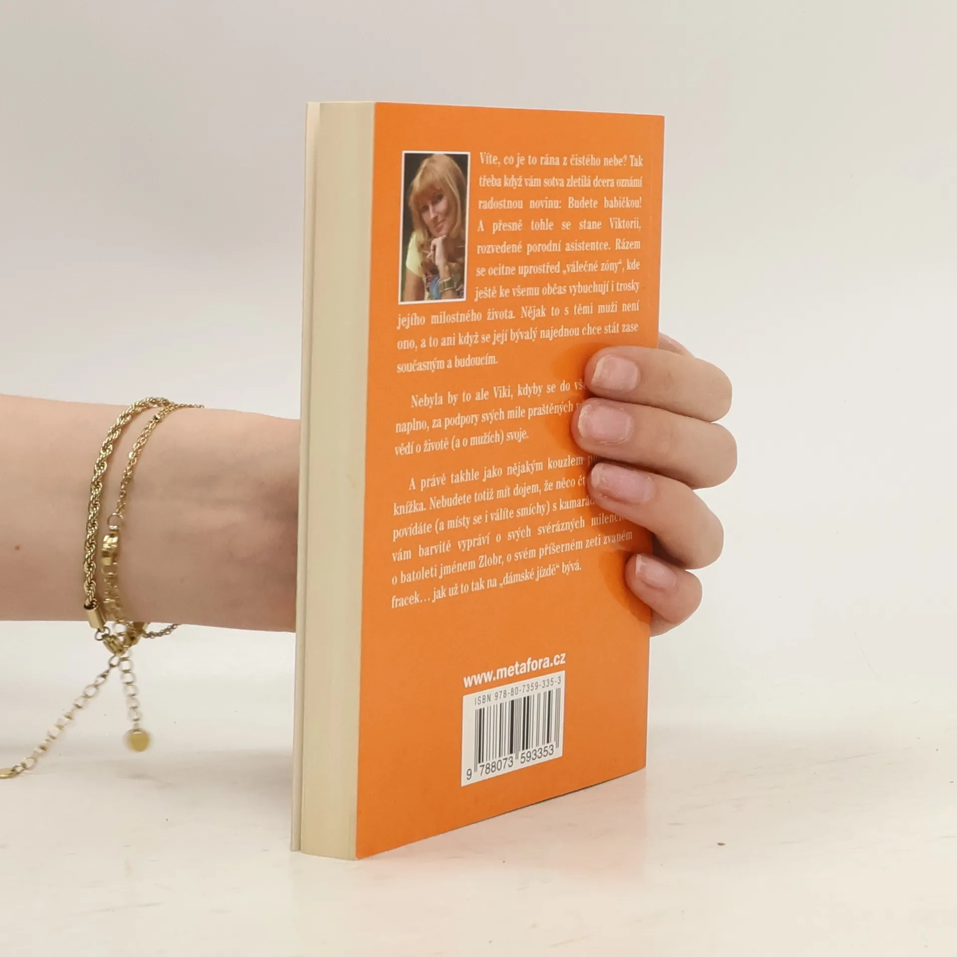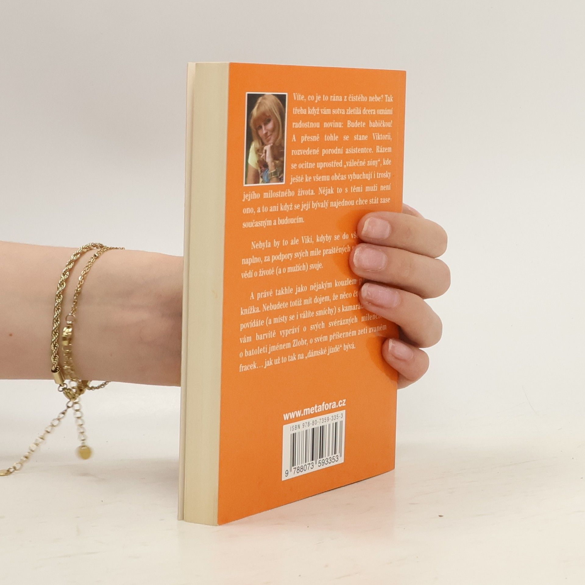 Ve čtyřiceti život nekončí, ani když vás náhle udělají babičkou a váš milostný život se změní v bojiště… Humorný příběh o ženách a pro ženy, který dodá zaručenou dávku životního optimismu. Víte, co je to rána z čistého nebe? Tak třeba když vám sotva zletilá dcera oznámí, že brzy budete babičkou! A přesně tohle se stane Viktorii, rozvedené porodní asistentce. Rázem se ocitne uprostřed bojové zóny, kde ještě ke všemu občas vybuchují i trosky jejího milostného života. Nějak to s těmi muži není ono, a to ani když se její bývalý najednou chce stát zase současným a budoucím. Nebyla by to ale Viky, kdyby se do všeho nevrhala naplno, za podpory svých mile praštěných přítelkyň, které vědí o životě svoje. A tak si nakonec poradí se vším, i se svým příšerným zetěm zvaným fracek…