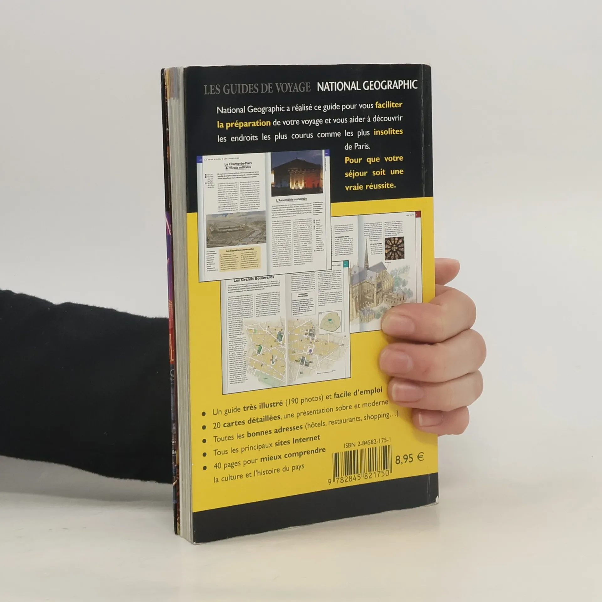National Geographic a réalisé ce guide pour vous faciliter la préparation de votre voyage et vous aider à découvrir les endroits les plus courus comme les plus insolites de Paris. Pour que votre séjour soit une vraie réussite. Un guide très illustré (190 photos) et facile d'emploi, 20 cartes détaillées, une présentation sobre et moderne, toutes les bonnes adresses (hôtels, restaurants, shopping...), tous les principaux sites Internet, 40 pages pour mieux comprendre la culture et l'histoire du pays.