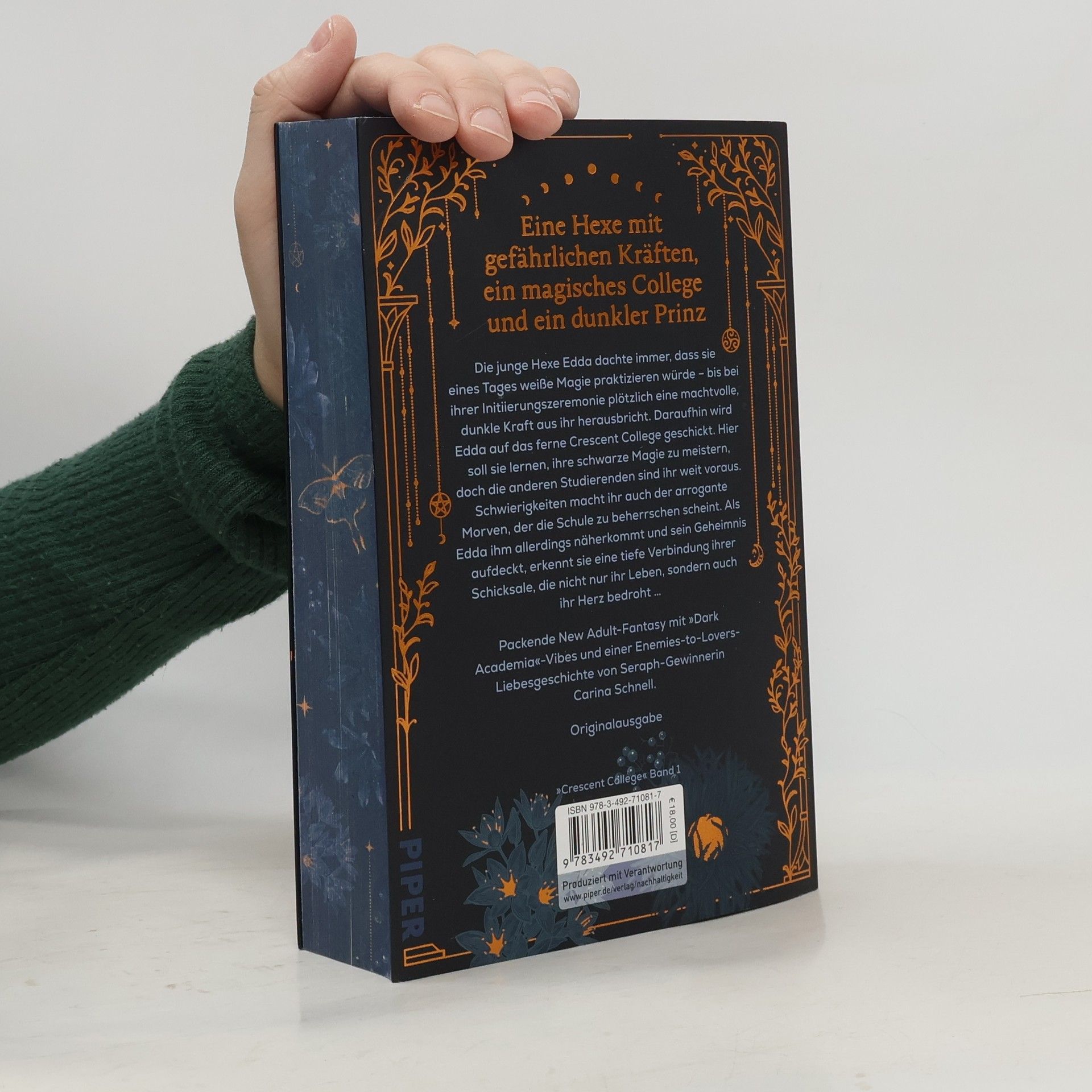 Eine Hexe, die ihre dunklen Kräfte nicht beherrschen kann, ein magisches College und ein dunkler Prinz *** Der mitreißende Auftakt zur neuen romantischen Fantasy-Dilogie von Seraph-Gewinnerin Carina Schnell! Mit limitiertem Farbschnitt und Page Overlay in der ersten Auflage. *** Die junge Hexe Edda dachte immer, dass sie eines Tages weiße Magie praktizieren würde – bis bei ihrer Initiationszeremonie plötzlich eine machtvolle, dunkle Kraft aus ihr herausbricht. Daraufhin wird Edda auf das ferne Crescent College geschickt. Hier soll sie lernen, ihre schwarze Magie zu meistern, doch die anderen Studierenden sind ihr weit voraus. Schwierigkeiten macht ihr auch der arrogante Morven, der die Schule zu beherrschen scheint. Als Edda allerdings sein Geheimnis aufdeckt, erkennt sie eine tiefe Verbindung ihrer Schicksale, die nicht nur ihr Herz, sondern auch ihr Leben bedroht … Packende New Adult-Fantasy mit »Dark Academia«-Vibes und einer Enemies-to-Lovers -Liebesgeschichte sowie den Tropes »Forced Proximity«, »He Falls Harder« und »Touch Her and Die«. Die »Crescent College« -Dilogie: Band 1: Her Dark Power Band 2: His Cursed Crown