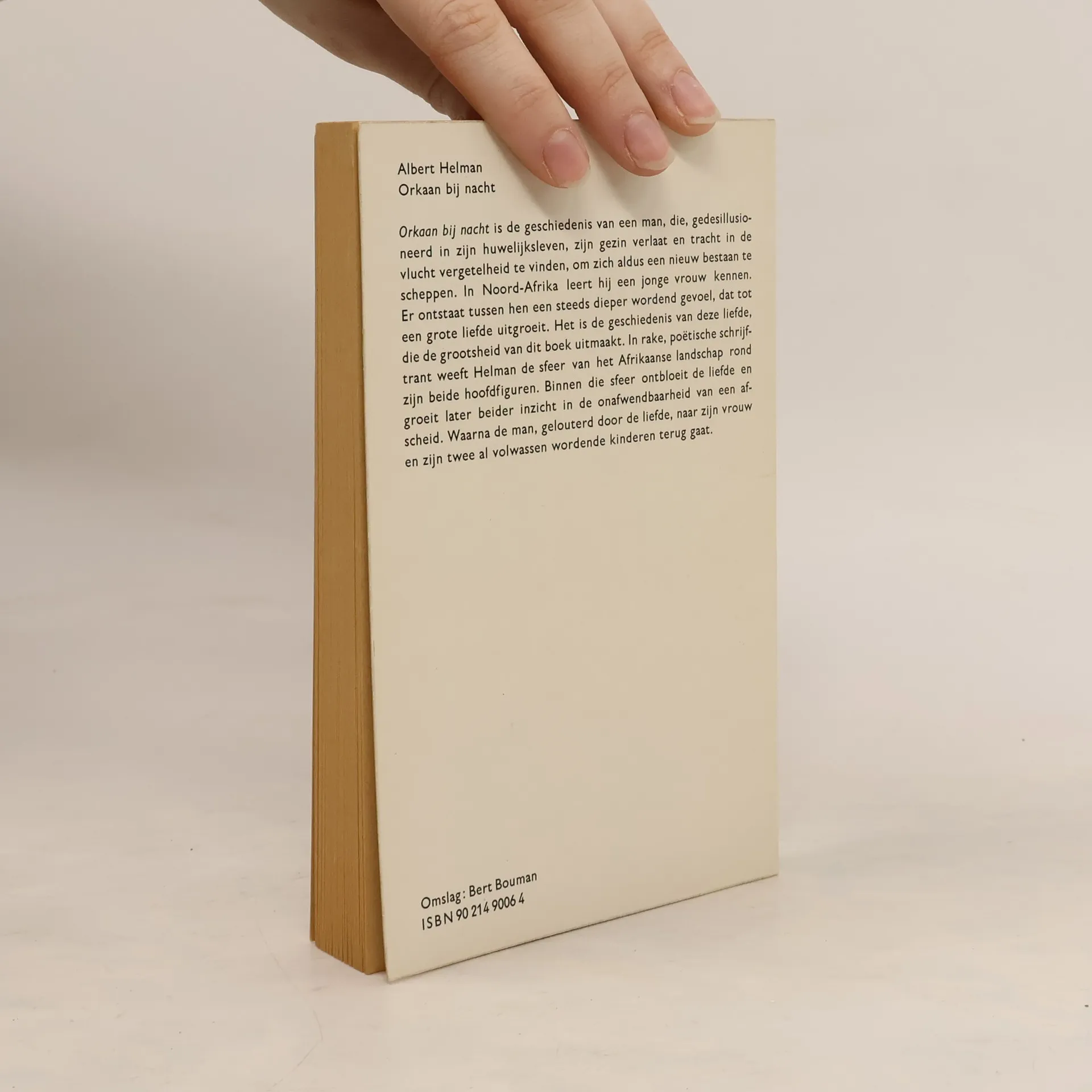 Orkaan bij nacht is de geschiedenis van een man, die, gedesillusioneerd in zijn huwelijksleven, zijn gezin verlaat en tracht in de vlucht vergetelheid te vinden, om zich aldus een nieuw bestaan te scheppen. In Noord-Afrika leert hij een jonge vrouw kennen. Er ontstaat tussen hen een steeds dieper wordend gevoel, dat tot een grote liefde uitgroeit. Het is de geschiedenis van deze liefde, die de grootsheid van dit boek uitmaakt. In rake, poëtische schrijftrant weeft Helman de sfeer van het Afrikaanse landschap rond zijn beide hoofdfiguren. Binnen die sfeer ontbloeit de liefde en groeit later beider inzicht in de onafwendbaarheid van een afscheid. Waarna de man, gelouterd door de liefde, naar zijn vrouw en zijn twee al volwassen wordende kinderen teruggaat.