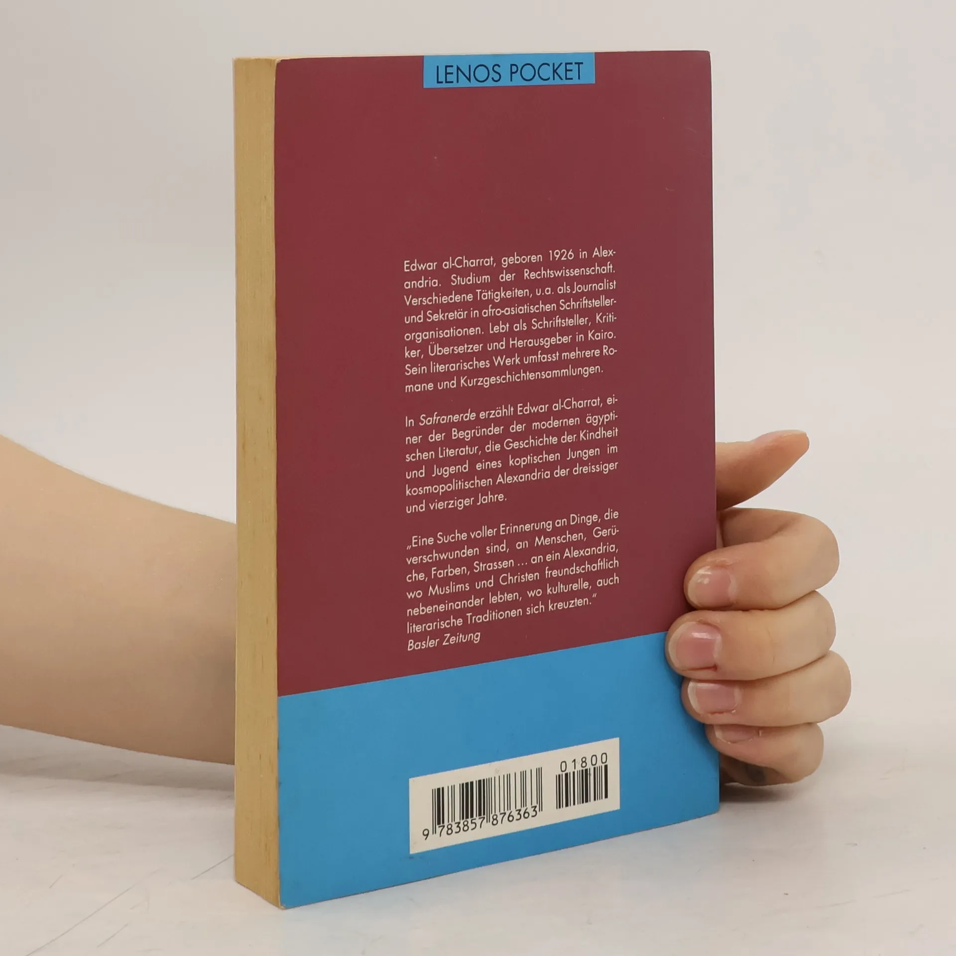 Edwar al-Charrat, geboren 1926 in Alexandria. Studium der Rechtswissenschaft. Verschiedene Tätigkeiten, u.a. als Journalist und Sekretär in afro-asiatischen Schriftstellerorganisationen. Lebt als Schriftsteller, Kritiker, Übersetzer und Herausgeber in Kairo. Sein literarisches Werk umfaßt mehrere Romane und Kurzgeschichtensammlungen. In 'Safranerde' erzählt Edwar al-Charrat, einer der Begründer der modernen ägyptischen Literatur, die Geschichte der Kindheit und Jugend eines koptischen Jungen im kosmopolitischen Alexandria der dreißiger und vierziger Jahre.