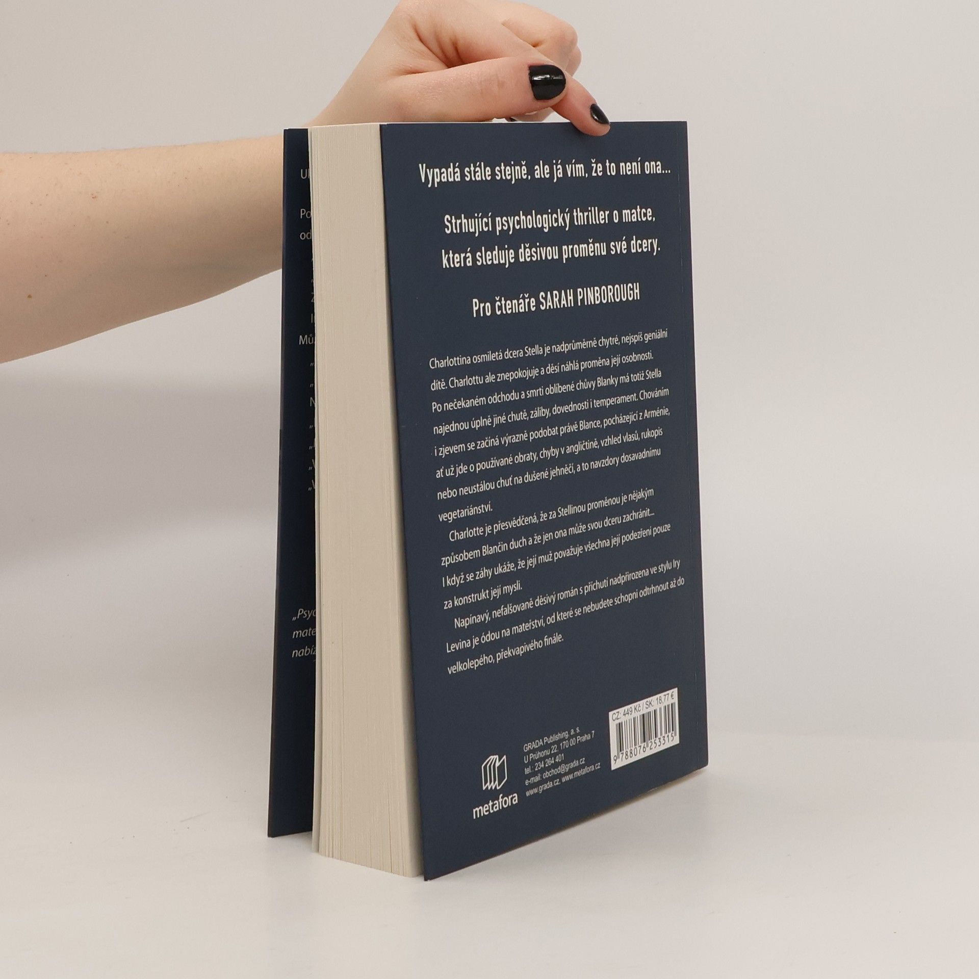Charlottina osmiletá dcera Stella je nadprůměrně chytré, nejspíš geniální dítě. Charlottu ale znepokojuje a děsí náhlá proměna její osobnosti. Po nečekaném odchodu a smrti oblíbené chůvy Blanky má totiž Stella najednou úplně jiné chutě, záliby, dovednosti i temperament. Chováním i zjevem se začíná výrazně podobat právě Blance, pocházející z Arménie, ať už jde o používané obraty, chyby v angličtině, vzhled vlasů, rukopis nebo neustálou chuť na dušené jehněčí, a to navzdory dosavadnímu vegetariánství. Charlotte, čekající druhé dítě a vyčerpaná těhotenstvím a častými nevolnostmi, je přesvědčená, že za Stellinou proměnou je nějakým způsobem Blanka. Že by Stellu posedla? Nebo se Stella stala svou bývalou chůvou? Nebo si tu chce Blančin duch něco vyřídit? Čím víc je Charlotte celou záležitostí pohlcená, tím víc je přesvědčená, že jen ona může svou dceru zachránit... I přesto, že se záhy ukáže, že její muž považuje všechna její podezření pouze za konstrukt její mysli. Jedinečný, mrazivý příběh zkoumá nezřetelné hranice diagnózy u dětí a zásadní význam mateřských instinktů. Napínavý, nefalšovaně děsivý román s příchutí nadpřirozena ve stylu Iry Levina je ódou na mateřství, od které se nebudete schopní odtrhnout až do velkolepého, překvapivého finále.