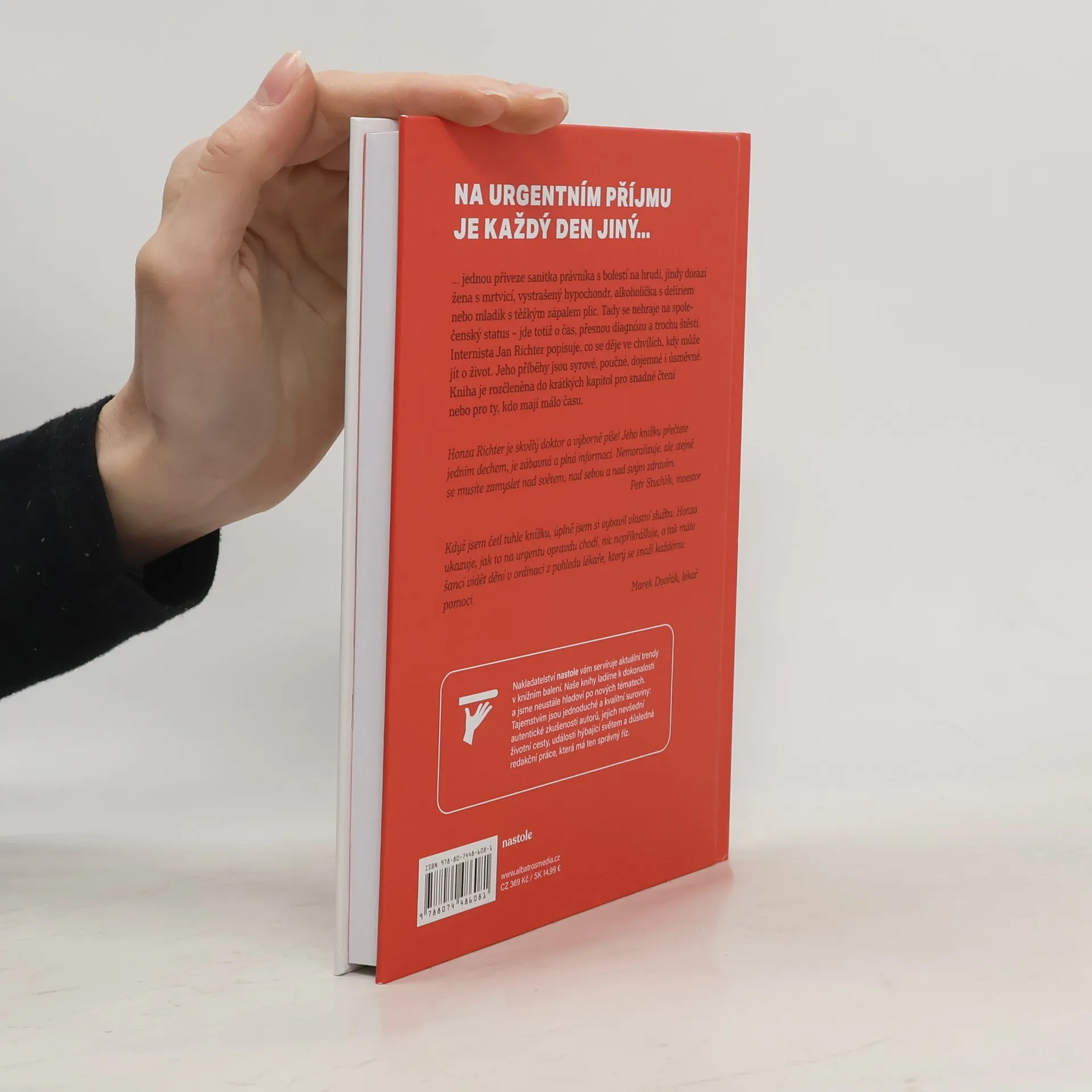 Na urgentním příjmu je každý den jiný… Jednou přiveze sanitka právníka s bolestí na hrudi, jindy dorazí žena s mrtvicí, vystrašený hypochondr, alkoholička s deliriem, zdrogovaný bezdomovec nebo mladík s těžkým zápalem plic. Tady se nehraje na společenský status – jde totiž o čas, přesnou diagnózu a trochu štěstí. Internista Jan Richter popisuje, co se děje ve chvílích, kdy může jít o život. Jeho příběhy z lékařské praxe jsou syrové, poučné, dojemné i úsměvné. Kniha je rozčleněná do krátkých kapitol pro snadné čtení i pro ty, co mají málo času.