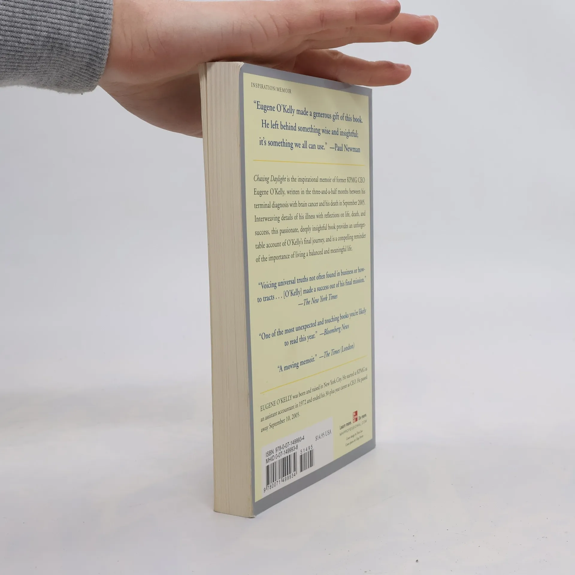 THE NEW YORK TIMES BESTSELLER Chasing Daylight is the honest, touching, and ultimately inspirational memoir of former KPMG CEO Eugene O'Kelley, completed in the three-and-a-half months between his diagnosis with brain cancer and his death in September 2005. Its haunting yet extraordinarily hopeful voice reminds us to embrace the fragile, fleeting moments of our lives-the brief time we have with our family, our friends, and even ourselves. This paperback edition features a new foreword by his wife, Corinne O'Kelley and a readers' group guide and questions. "Voicing universal truths . . . shared . . . simply and clearly."-Janet Malin, New York Times "Words to live by."-Kerry Hannon, USA Today "One of the most unexpected and touching books you're likely to read this year."-Edward Nawotka, Bloomberg News "An honest, thought-provoking memoir . . . O'Kelly has many lessons to teach us on how to live."-Steve Powers, Houston Chronicle "[A] well-written and moving book."-TheEconomist.com