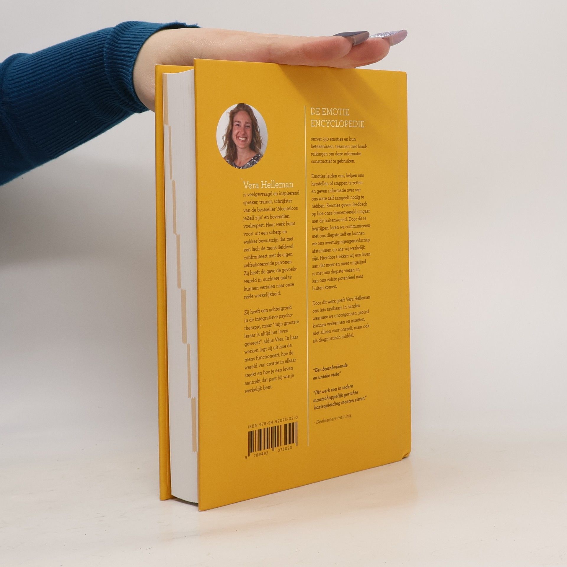 ‘De emotie encyclopedie’ omvat 350 emoties en hun betekenissen tezamen met handreikingen om deze informatie constructief te gebruiken. Emoties leiden ons, helpen ons herstellen of stappen te zetten en geven informatie over wat ons ware zelf aangeeft dat we nu nodig hebben. Ze geven feedback op hoe onze binnenwereld omgaat met de buitenwereld. Door dit te begrijpen leren we communiceren met ons diepste zelf en kunnen we ons overtuigingengereedschap afstemmen op wie wij werkelijk zijn. Hierdoor zullen wij een leven aantrekken dat meer uitgelijnd is met ons diepste wezen en kan ons volste potentieel naar buiten komen. Door dit werk geeft Vera Helleman ons iets tastbaars in handen waarmee we onontgonnen gebied kunnen verkennen en inzetten, niet alleen voor onszelf, maar ook als diagnostisch middel.