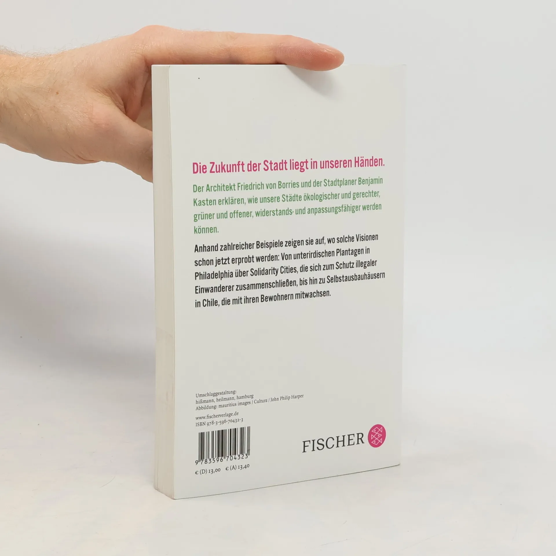 Ausgehend von einer kritischen Gegenwartsanalyse entwerfen der Architekt Friedrich von Borries und der Stadtplaner Benjamin Kasten das Bild einer Stadt der Zukunft, die ökologischer und gerechter ist als die Stadt der Gegenwart. Sie ist größer und dichter, aber auch offener und grüner – und jeder Bewohner ist aktiv in ihre Gestaltung miteinbezogen. Anhand von Beispielen aus Architektur, Stadtplanung, Kunst und Design zeigen die Autoren, wo Aspekte dieser Zukunft schon jetzt erprobt werden: Von vertikalen Wäldern über unterirdische Plantagen, Selbstausbauhäuser und transnationale Grenzstädte bis hin zur Hochstraße in Seoul, die zum Park umgewidmet wurde. Ihre Darstellung ist gleichermaßen kritisch und kreativ, analytisch und visionär.