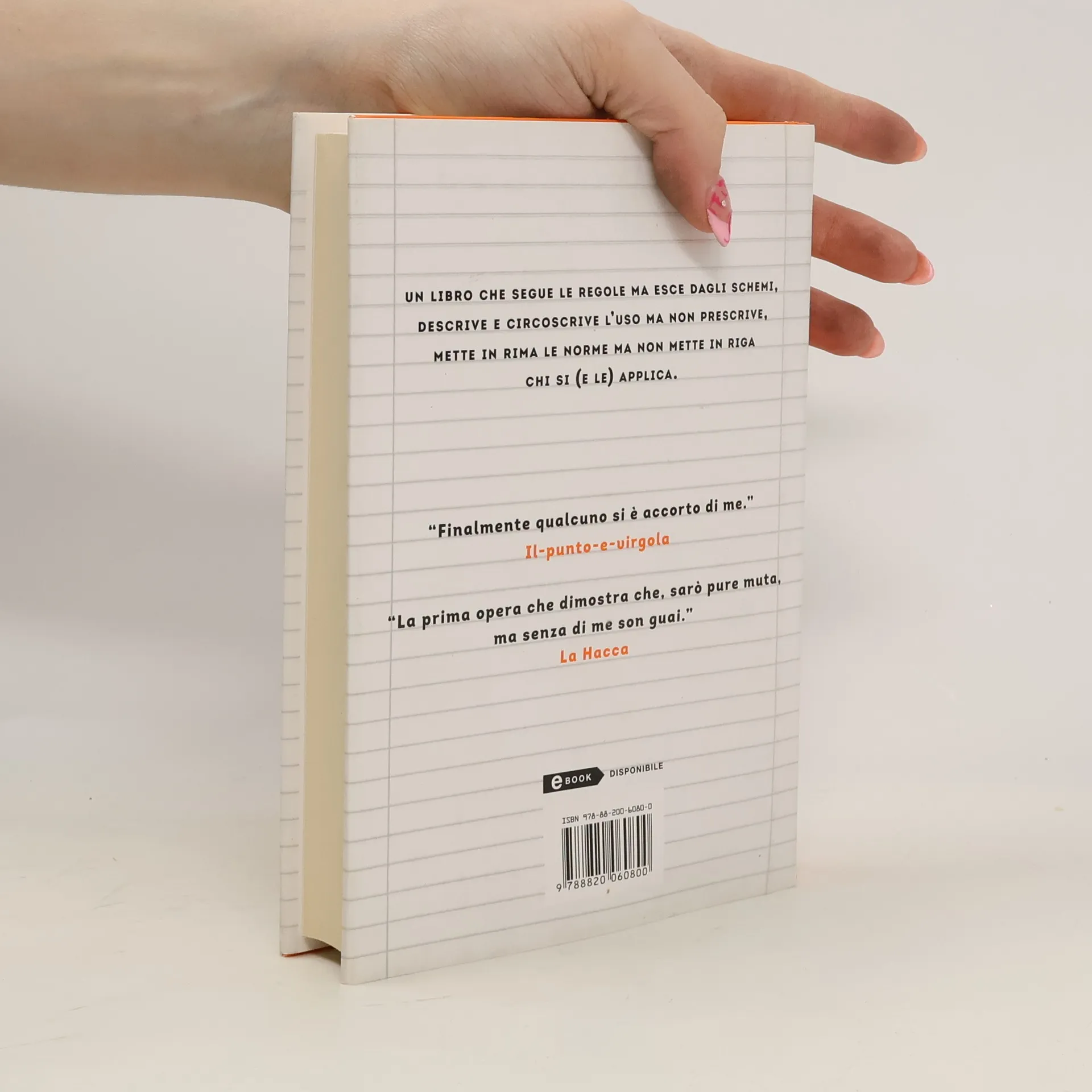 «Ragazzi, tutti attenti! Oggi parliamo dei plurali dei nomi composti. Allora, le regole sono troppe e piene di eccezioni. Non ci provate neanche a impararle a memoria. Usate il buon senso e soprattutto un buon vocabolario.» Se <b>Massimo Roscia</b> salisse (e non salirebbe) in cattedra, la sua lezione andrebbe (e non andasse) più o meno così. Perché nella grammatica crede fermamente, un po' meno nell'approccio paludato tutto nozioni e casi noiosi. Così ha deciso di svecchiarlo, per dimostrare che le norme possono essere semplici, intuitive e persino amichevoli. U<b>n po' Rodari e un po' Flaiano</b>, passa in rassegna i fondamenti dell'italiano e si diverte a calarli in esempi contemporanei (dai ritmi rap alle serie tv, dai fantasy ai videogame); riprende gli svarioni più comuni (dall'uso maldestro dell'accento all'abuso disinvolto dell'apostrofo) creando giochi promemoria per non essere più indotti in errore; si batte per la salvaguardia delle forme (utili) in estinzione, come il congiuntivo, e invoca il debellamento della pandemia di ciaone e apericena. Sempre <b>all'insegna dell'uso pratico e vivo, perché la lingua è fatta per essere parlata</b>, adattata, modificata, arricchita, cambiata, rivista, aggiornata, corretta, sempre e comunque amata.
