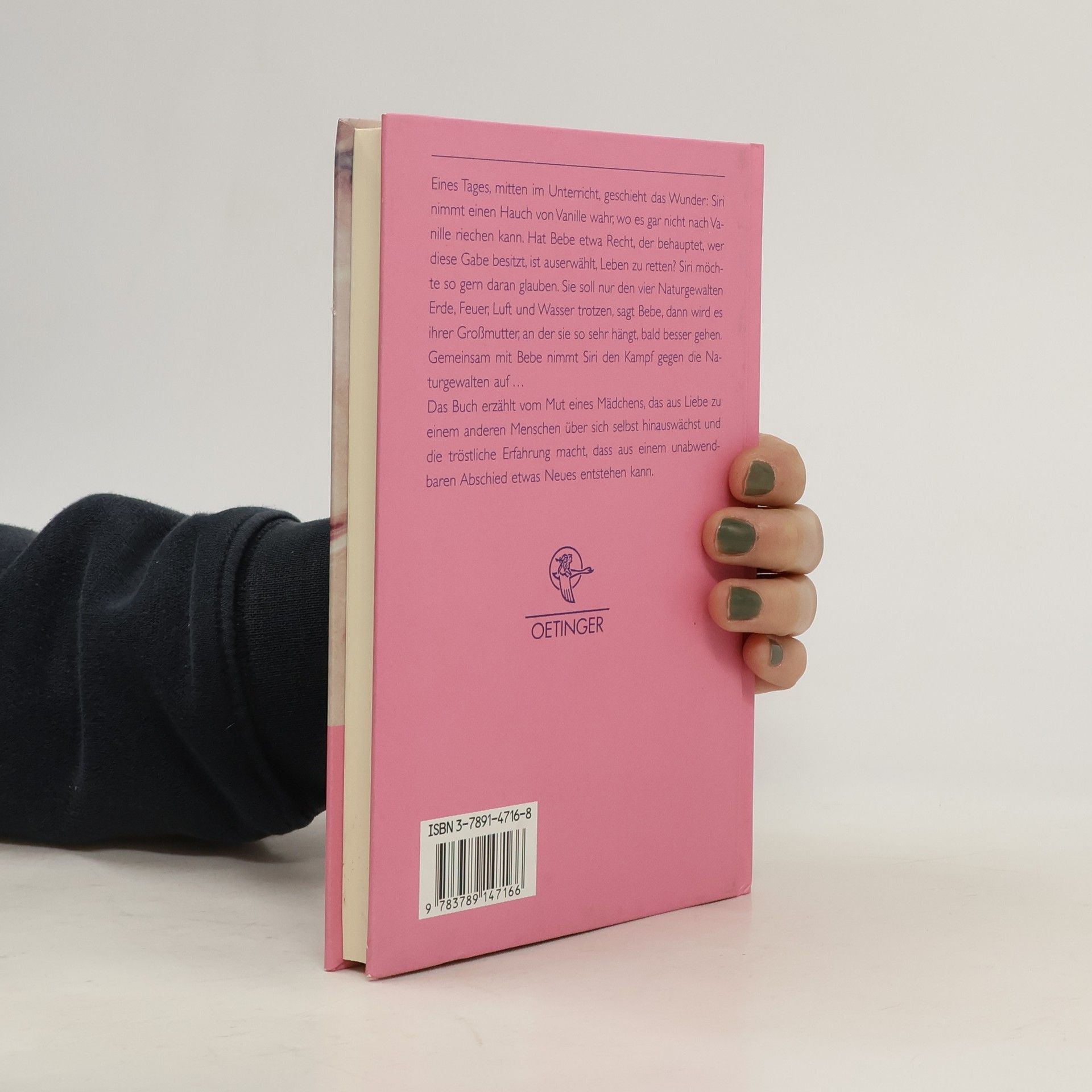 Eines Tages, mitten im Unterricht, geschieht das Wunder: Siri nimmt einen Hauch von Vanille wahr, wo es gar nicht nach Vanille riechen kann. Hat Bebe etwas Recht, der behauptet, wer diese Gabe bestitzt, ist auserwählt, Leben zu retten? Siri möchte so gerne daran glauben. Sie soll nur den vier Naturgewalten Erde, Feuer, Luft und Wasser trotzen, sagt Bebe, dann wird es ihrer Großmutter, an der sie so sehr hängt, bald besser gehen. Gemeinsam mit Bebe nimmt Siri den Kampf gegen die Naturgewalten auf...Das Buch erzählt vom Mut eines Mädchens, das aus Liebe zu einem anderen Menschen über sich selbst hinauswächst und die tröstliche Erfahrung macht, dass aus einem unabwendbaren Abschied etwas Neues entstehen kann
