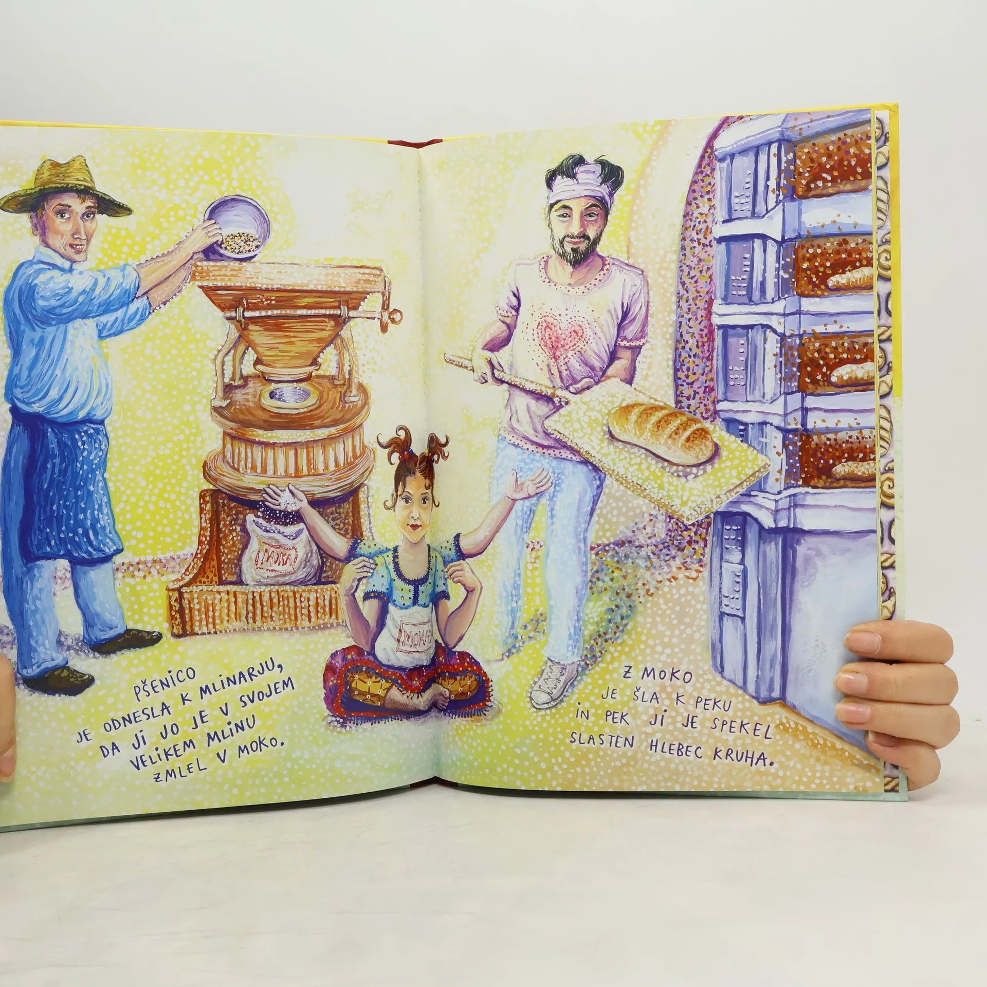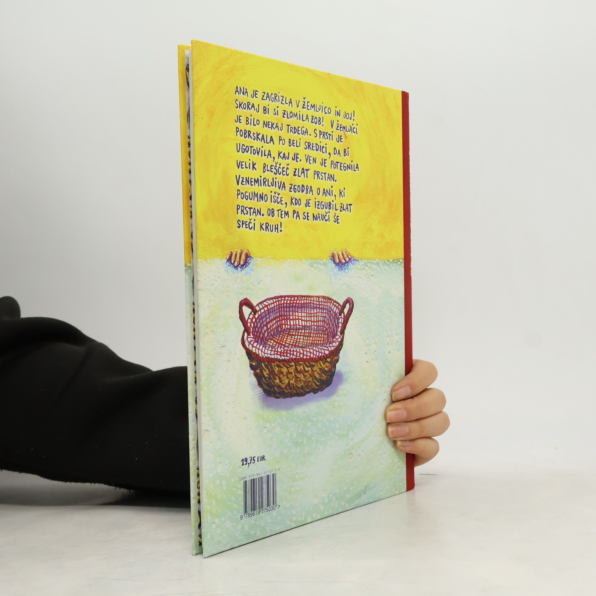 Ana je zagrizla v žemljico in ... joj! Skoraj bi si zlomila zob! V žemljici je bilo nekaj trdega. S prsti je pobrskala po beli sredici, da bi ugotovila, kaj je. Ven je potegnila velik bleščeč zlat prstan. Vznemirljiva zgodba o Ani, ki pogumno išče, kdo je izgubil zlat prstan. Ob tem pa se nauči še speči kruh!