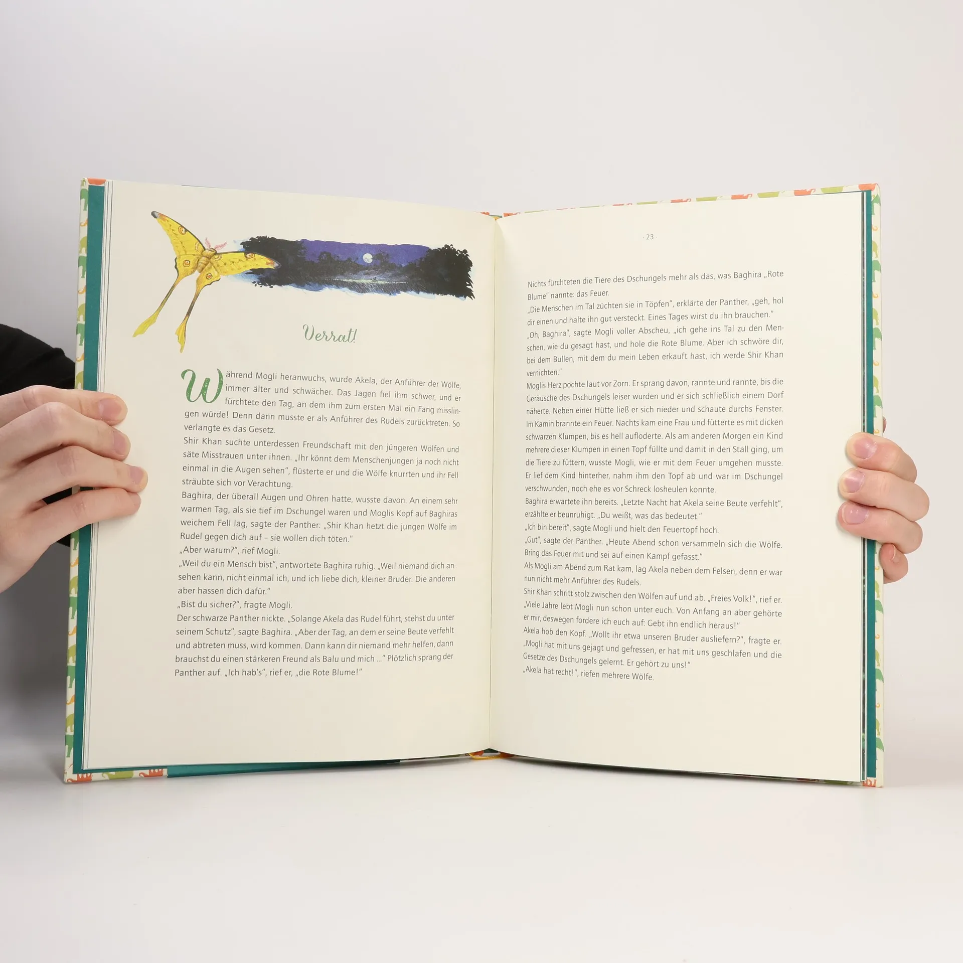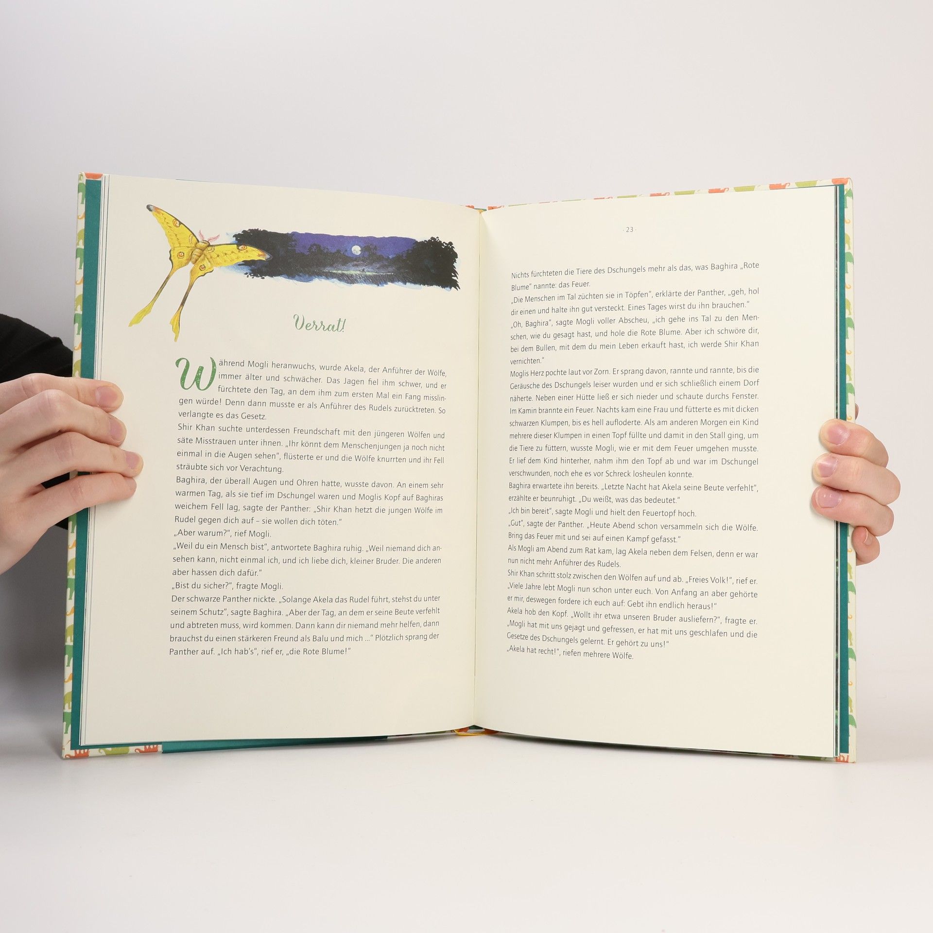 Wie kein anderer ließ der Literaturnobelpreisträger Rudyard Kipling den indischen Subkontinent in seinen Geschichten lebendig werden. Als im Jahr 1894 das erste der beiden Dschungelbücher erschien, ahnte trotzdem vermutlich niemand, wie beliebt die beiden Bände auch nach mehr als 100 Jahren noch sein würden. Besonders die Erzählungen um den kleinen Wolfsjungen Mogli, der im Dschungel aufwächst und erst als junger Mann den Weg zurück zu den Menschen findet, nahmen Einzug in die Kinderzimmer dieser Welt, wurden bereits etliche Male verfilmt und vertont – ein Klassiker nicht nur für die Kleinen. Mit außergewöhnlich detailreichen Illustrationen von Silvio Neuendorf. Das Buch eignet sich für Kinder ab 5 Jahren und beinhaltet die für die Altersgruppe behutsam gekürzte und bearbeitete Mogli-Geschichte. Es ist außerdem liebevoll ausgestattet mit einem vierfarbig bedruckten Ganzleineneinband mit Goldfolienprägung, einer Banderole mit Goldfolienprägung und Spotlack sowie einem Leseband. In der Reihe „Coppenrath Kinderklassiker“ sind weitere Titel lieferbar.