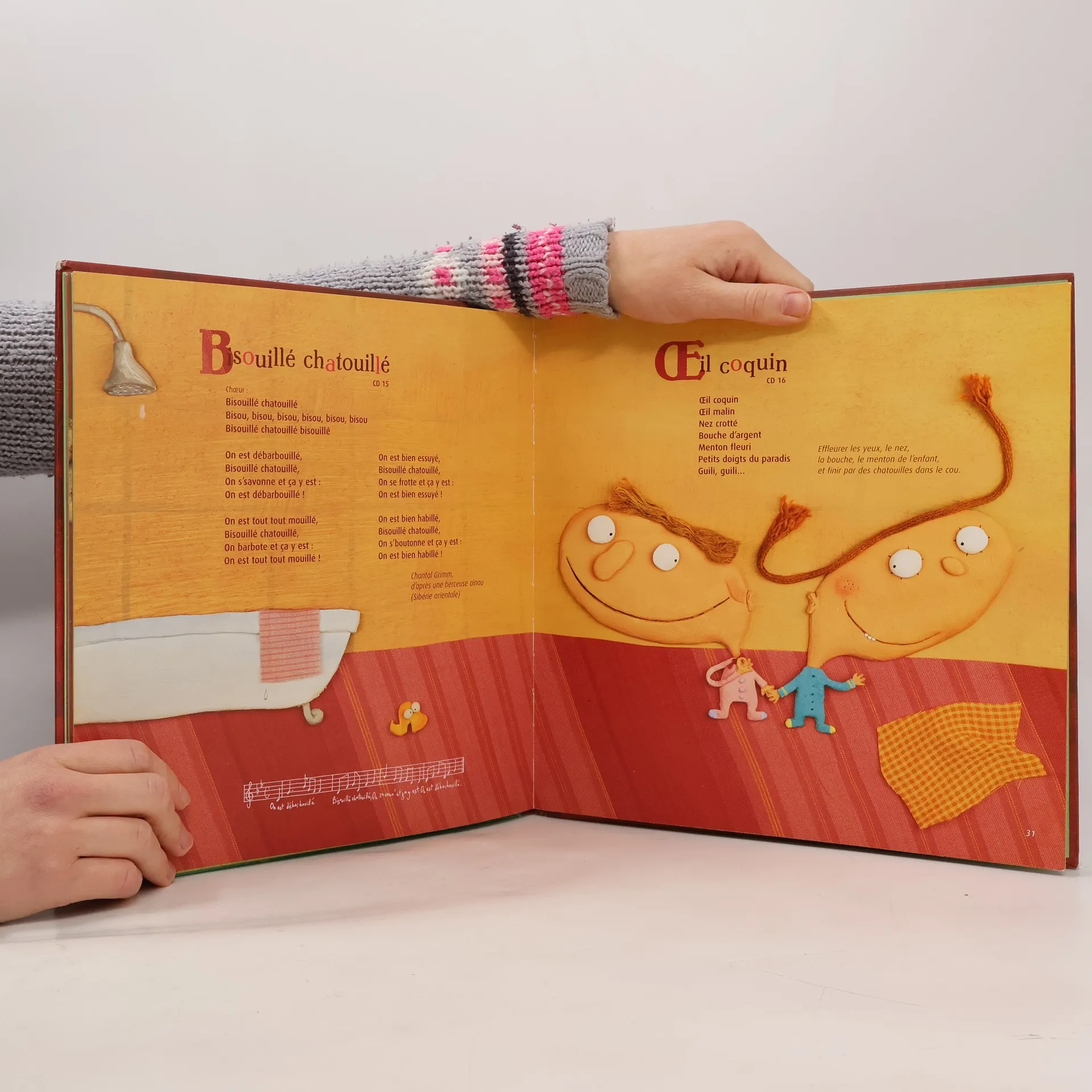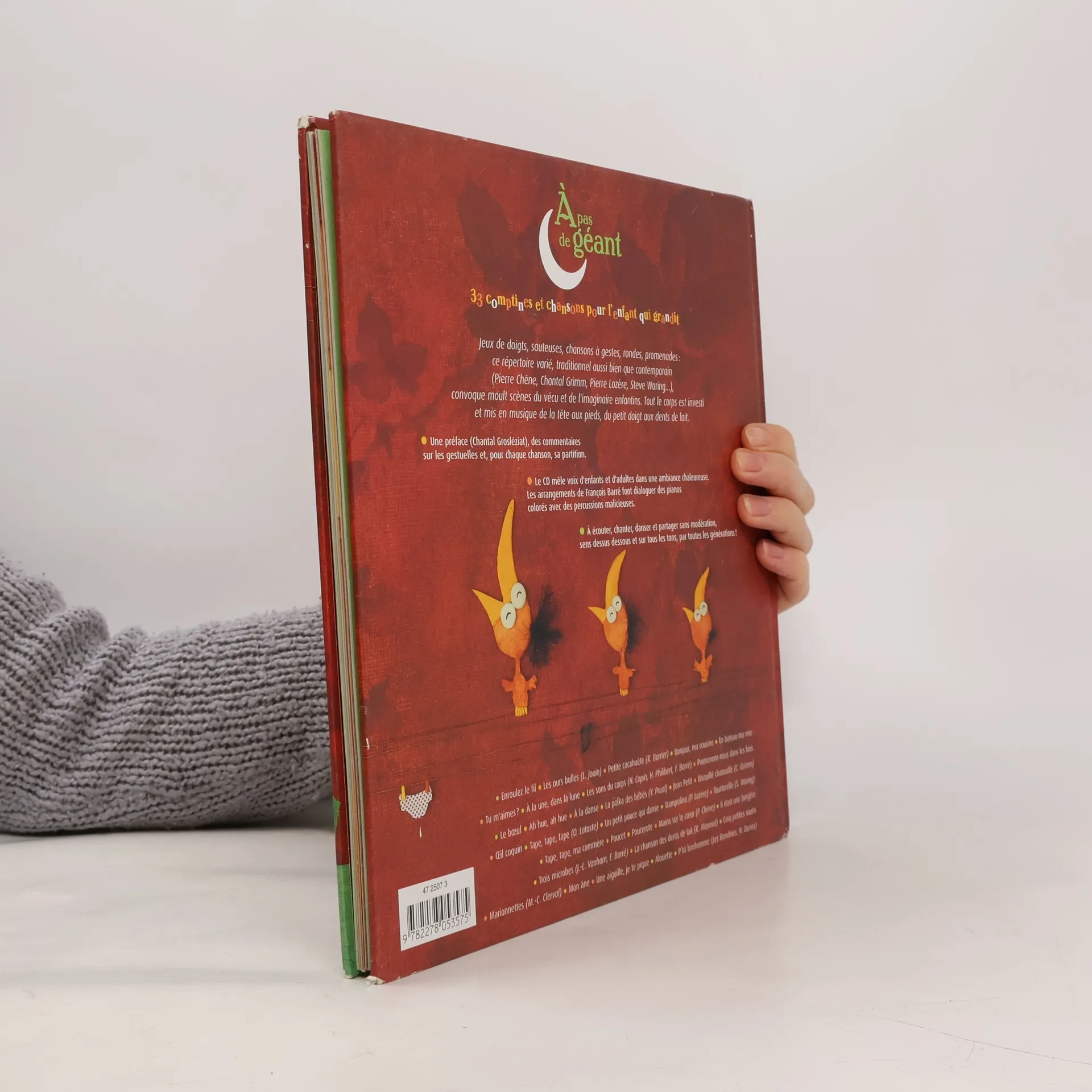 Jeux de doigts, sauteuses, chansons à gestes, rondes, promenades : ce répertoire varié, traditionnel aussi bien que contemporain (Pierre Chêne, Chantal Grimm, Pierre Lozère, Steve Waring...), convoque moult scènes du vécu et de l'imaginaire enfantins. Tout le corps est investi et mis en musique de la tête aux pieds, du petit doigt aux dents de lait. Une préface (Chantal Grosléziat), des commentaires sur les gestuelles et, pour chaque chanson, sa partition. Le CD mêle voix d'enfants et d'adultes dans une ambiance chaleureuse. Les arrangements de François Barré font dialoguer des pianos colorés avec des percussions malicieuses. À écouter, chanter, danser et partager sans modération, sens dessus dessous et sur tous les tons, par toutes les générations !