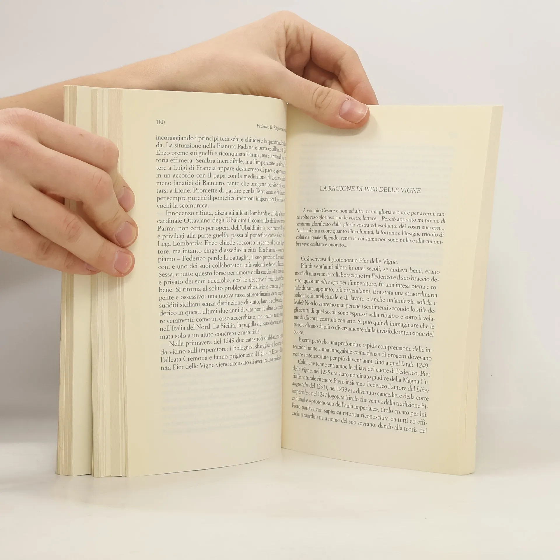 «La figura di Federico ha attirato l'attenzione dei suoi contemporanei e di coloro che vissero subito dopo il grande Svevo. Di fronte al cumulo delle fonti, il rischio è dunque quello dei borgesiani cartografi dell'impero cinese che ossessionati dall'assoluta precisione finirono per disegnare una mappa 1:1 del territorio. Resta ancora invece da fare in parte la ricostruzione delle relazioni e del confronto tra Federico e il suo mondo, quel cinquantennio a cavallo fra i due secoli, il XII e il XIII, in cui l'Europa apre gradualmente le sue città e le sue scuole a un 'sapere nuovo', a maestri che insegnano con nuovi modi e nuove ragioni nuove discipline", a una visione del mondo naturale ed etico che cambia lo stile della vita collettiva e individuale».