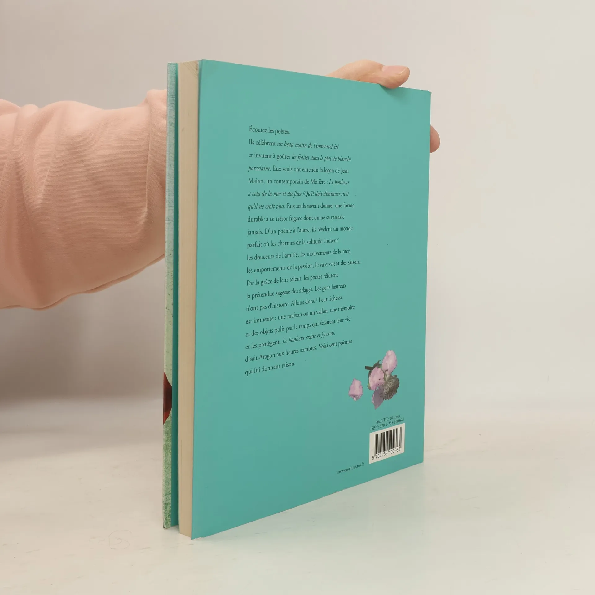 Après les Cents poèmes d'amour , ce volume magnifie les bonheurs simples de la vie... Choix des textes par Albine Novarino et Béatrice Mandopoulos, photos de Michel Maïofiss. Écoutez les poètes. Ils célèbrent un beau matin de l'immortel été et invitent à goûter les fraises dans le plat de blanche poorcelaine . Eux seuls ont entendu la leçon de Jean Mairet, un contemporain de Molière : Le bonheur a cela de la mer et du flux | Qu'il doit diminuer sitôt qu'il ne croît plus . Eux seuls savent donner une forme durable à ce trésor fugace dont on ne se rassasie jamais. D'un poème à l'autre, ils révèlent un monde parfait où les charmes de la solitude croisent les douceurs de l'amitié, les mouvements de la mer, les emportements de la passion, le va-et-vient des saisons. Par la grâce de leur talent, les poètent réfutent la prétendue sagesse des adages. Les gens heureux n'ont pas d'histoire. Allons donc ! Leur richesse est immense : une maison ou un vallon, une mémoire et des objets polis par le temps qui éclairent leur vie et les protègent. Le bonheur existe et j'y crois , disait Aragon aux heures sombres. Voici cent poèmes qui lui donnent raison.