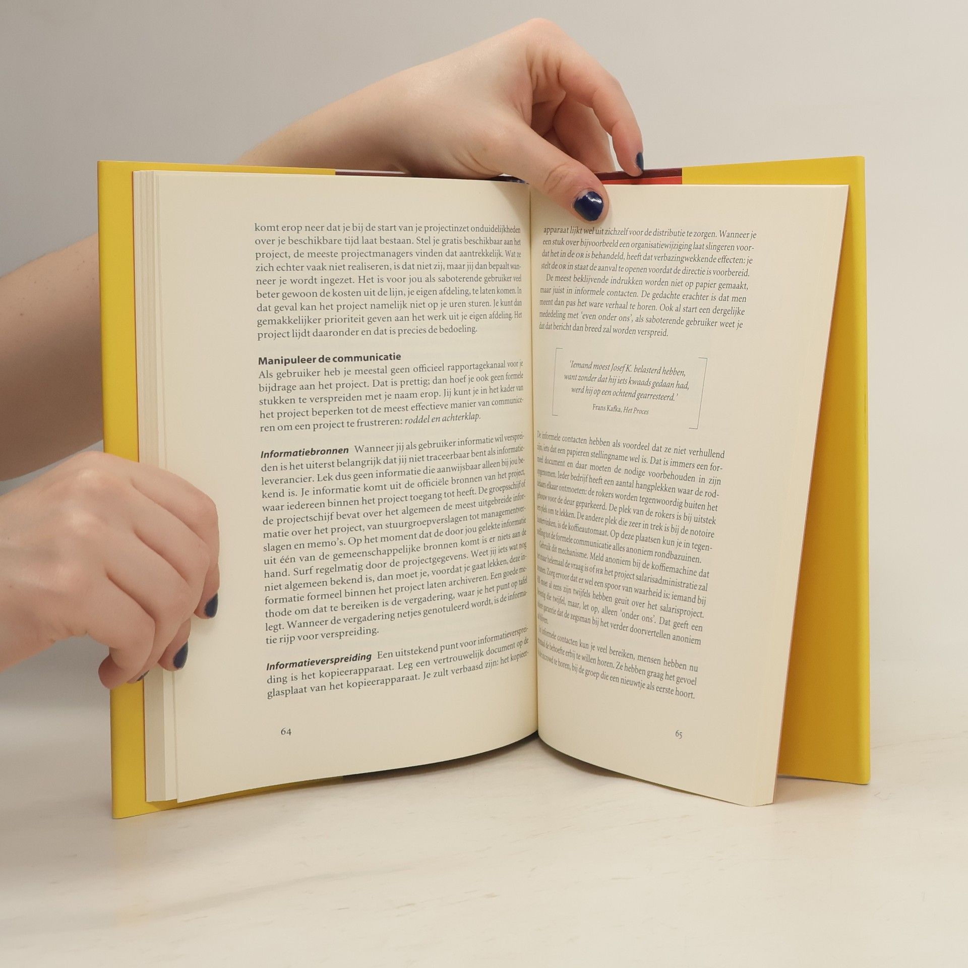 In veel organisaties wordt in meer of mindere mate projectmatig gewerkt. Bij veel projecten (bijvoorbeeld ICT-projecten of projecten in de sfeer van reorganisatie) worden de beoogde resultaten niet of niet op tijd gehaald of worden de beschikbare budgetten fors overtreden. In dit zeer helder geschreven praktijkboek wordt ingegaan op de rol van tegenstanders van een project. De auteurs beschrijven waarom projecten soms op grote weerstand stuiten, bijvoorbeeld omdat een succesvol project kan leiden tot banenverlies. Sabotage van het project ligt dan voor de hand. In enkele hoofdstukken wordt ingegaan op het belang van sabotage door de opdrachtgever van het project, de projectmanager, de vakspecialist, een OR-lid en dergelijken. Op heel herkenbare wijze wordt geschetst hoe projectsabotage kan worden gerealiseerd, zoals samenzwering, manipulatie van informatie en het frustreren van de bureacratie rondom een project. Dit boek is geschikt voor iedereen die kennis wenst te verkrijgen over fricties in projecten. Voorkennis is niet nodig.