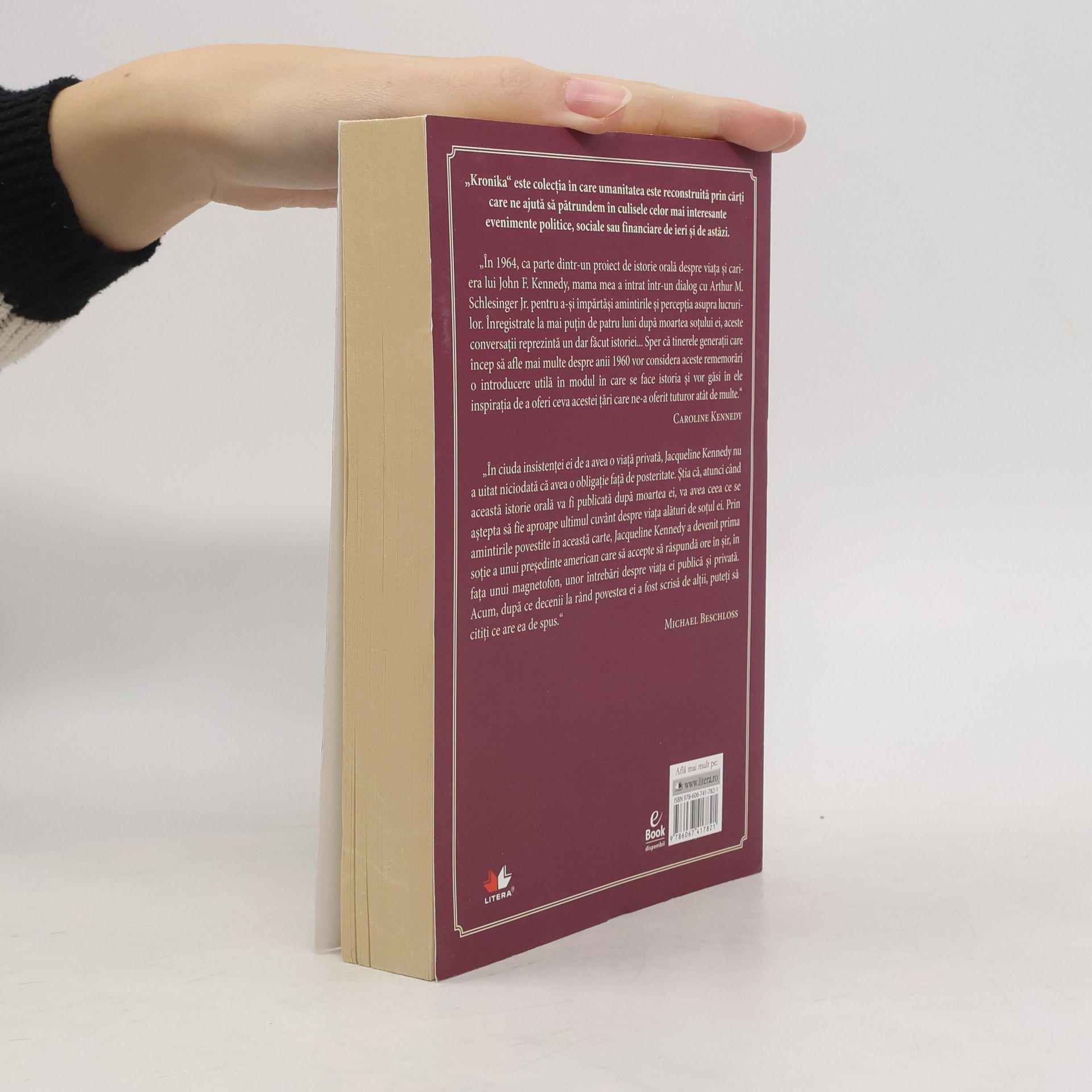 "In 1964, ca parte dintr-un proiect de istorie orala despre viata si cariera lui John F. Kennedy, mama mea a intrat intr-un dialog cu Arthur M. Schlesinger Jr. pentru a-si impartasi amintirile si perceptia asupra lucrurilor. Inregistrate la mai putin de patru luni de la moartea sotului ei, aceste conversatii reprezinta un dar facut istoriei... Sper ca tinerele generatii care incep sa afle mai multe despre anii 1960 vor considera aceste rememorari o introducere utila in modul in care se face istoria si vor gasi in ele inspiratia de a oferi ceva acestei tari care ne-a oferit tuturor atat de multe." Caroline Kennedy "In ciuda insistentei ei de a avea o viata privata, Jacqueline Kennedy nu a uitat niciodata ca avea o obligatie fata de posteritate. Stia ca, atunci cand aceasta istorie orala va fi publicata dupa moartea ei, va avea ceea ce se astepta sa fie aproape ultimul cuvant despre viata alaturi de sotul ei. Prin amintirile povestite in aceasta carte, Jacqueline Kennedy a devenit prima sotie a unui presedinte american care sa accepte sa raspunda ore in sir, in fata unui megafon, unor intrebari despre viata ei publica si privata. Acum, dupa ce decenii la rand povestea ei a fost scrisa de altii, puteti sa cititi ce are ea de spus."