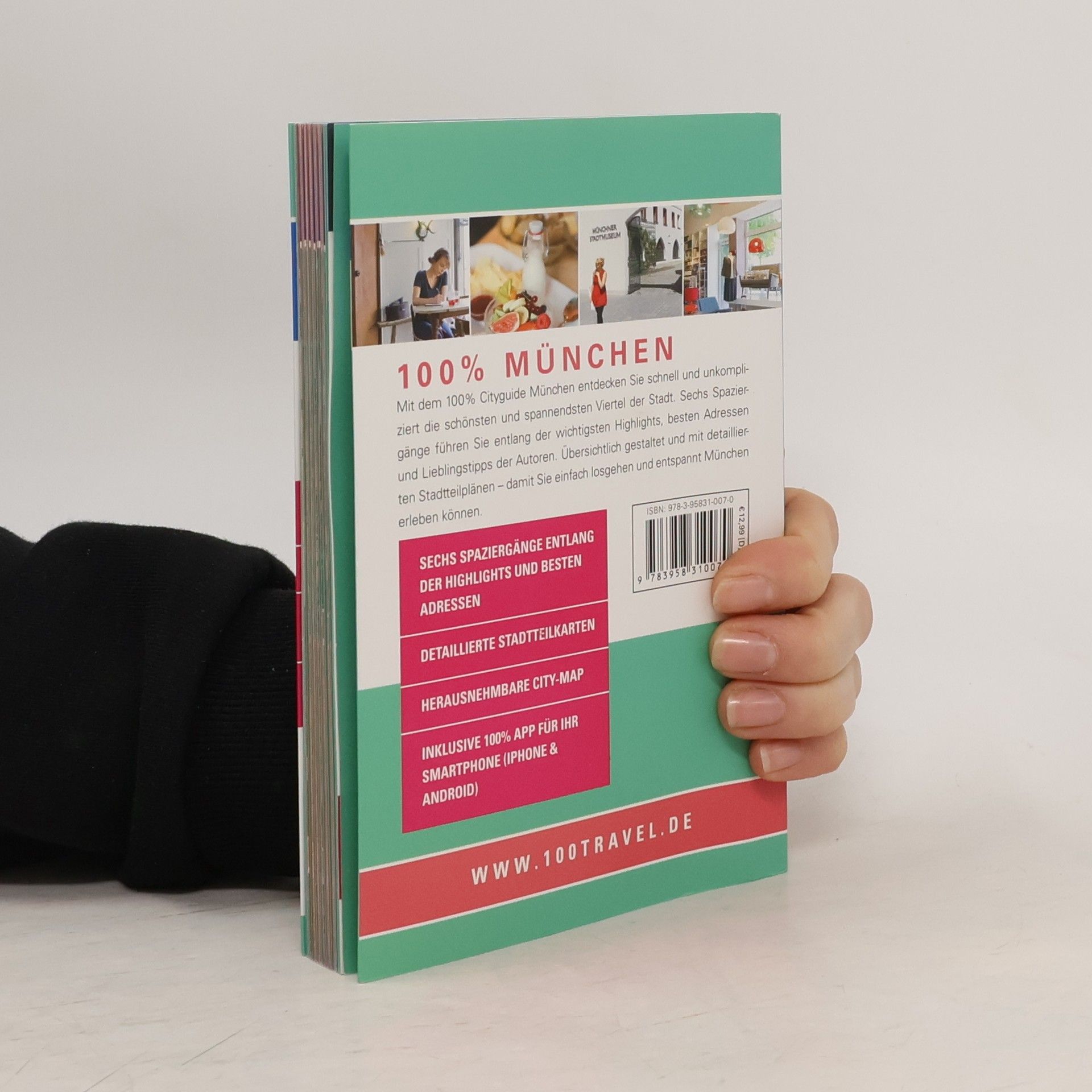 Mit dem 100% Cityguide München entdecken Sie schnell und unkompliziert die schönsten und spannendsten Viertel der Stadt. Sechs Spaziergänge führen Sie entlang der wichtigsten Highlights, besten Adressen und Lieblingstipps der Autorin zu den Themen Sehenswürdigkeiten, Essen & Trinken, Shopping und München live. Übersichtlich gestaltet, mit detaillierten Stadtteilkarten und herausnehmbarem Stadtplan – damit Sie einfach losgehen und entspannt München erleben können. Mit der 100% Travel App können Sie sich alle Adressen des 100% Cityguides einfach und kostenlos auf Ihr Smartphone (iPhone oder Android) herunterladen. Ein GPS-basierter Stadtplan zeigt die Adressen in Ihrer Nähe an. Die App ist komplett offline nutzbar, es entstehen keine Roaming-Gebühren.