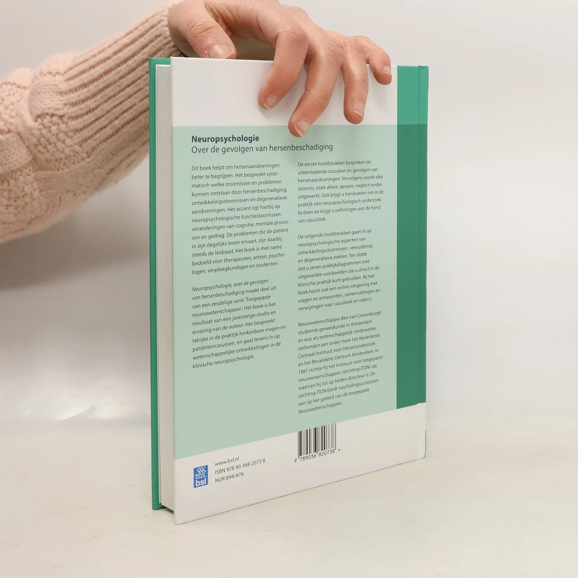 Dit boek helpt professionals (in opleiding) om hersenaandoeningen beter te begrijpen. Het bespreekt systematisch welke stoornissen en problemen kunnen ontstaan door hersenbeschadiging, ontwikkelingsstoornissen en degeneratieve aandoeningen. De problemen die de patiënt in zijn dagelijks leven ervaart, zijn daarbij steeds de leidraad. Het boek is met name bedoeld voor therapeuten, artsen, psychologen, verpleegkundigen en studenten. Neuropsychologie, Over de gevolgen van hersenaandoeningen maakt deel uit van de een zesdelige serie ‘Toegepaste neurowetenschappen’. Het boek is gebaseerd op jarenlang onderzoek en talrijke patiëntencasussen. Het boek gaat in op wetenschappelijke ontwikkelingen in de klinische neuropsychologie én beschrijft vragen en situaties uit de praktijk.De eerste hoofdstukken bespreken de uiteenlopende oorzaken en gevolgen van hersenaandoeningen. Vervolgens wordt elke stoornis, zoals afasie en apraxie, uitgewerkt. Ook krijgt u handvatten om in de praktijk een neuropsychologisch onderzoek te doen en krijgt u oefeningen aan de hand van casuïstiek. De volgende hoofdstukken gaan in op neuropsychologische aspecten van ontwikkelingsstoornissen, veroudering en degeneratieve ziekten. Ten slotte ziet u zeven praktijkdiagrammen met uitgewerkte voorbeelden die u direct in de klinische praktijk kan gebruiken. Bij het boek hoort ook een online omgeving met vragen en antwoorden, samenvattingen en verwijzingen naar casuïstiek en video’s. Neurowetenschapper Ben van Cranenburgh studeerde geneeskunde in Amsterdam en was als wetenschappelijk medewerker verbonden aan onder meer het Nederlands Centraal Instituut voor Hersenonderzoek en het Revalidatie Centrum Amsterdam. In 1987 richtte hij het Instituut voor toegepaste neurowetenschappen (ITON) op, waarvan hij tot op heden directeur is. De stichting ITON biedt nascholingscursussen aan op het gebied van de toegepaste Neurowetenschappen.