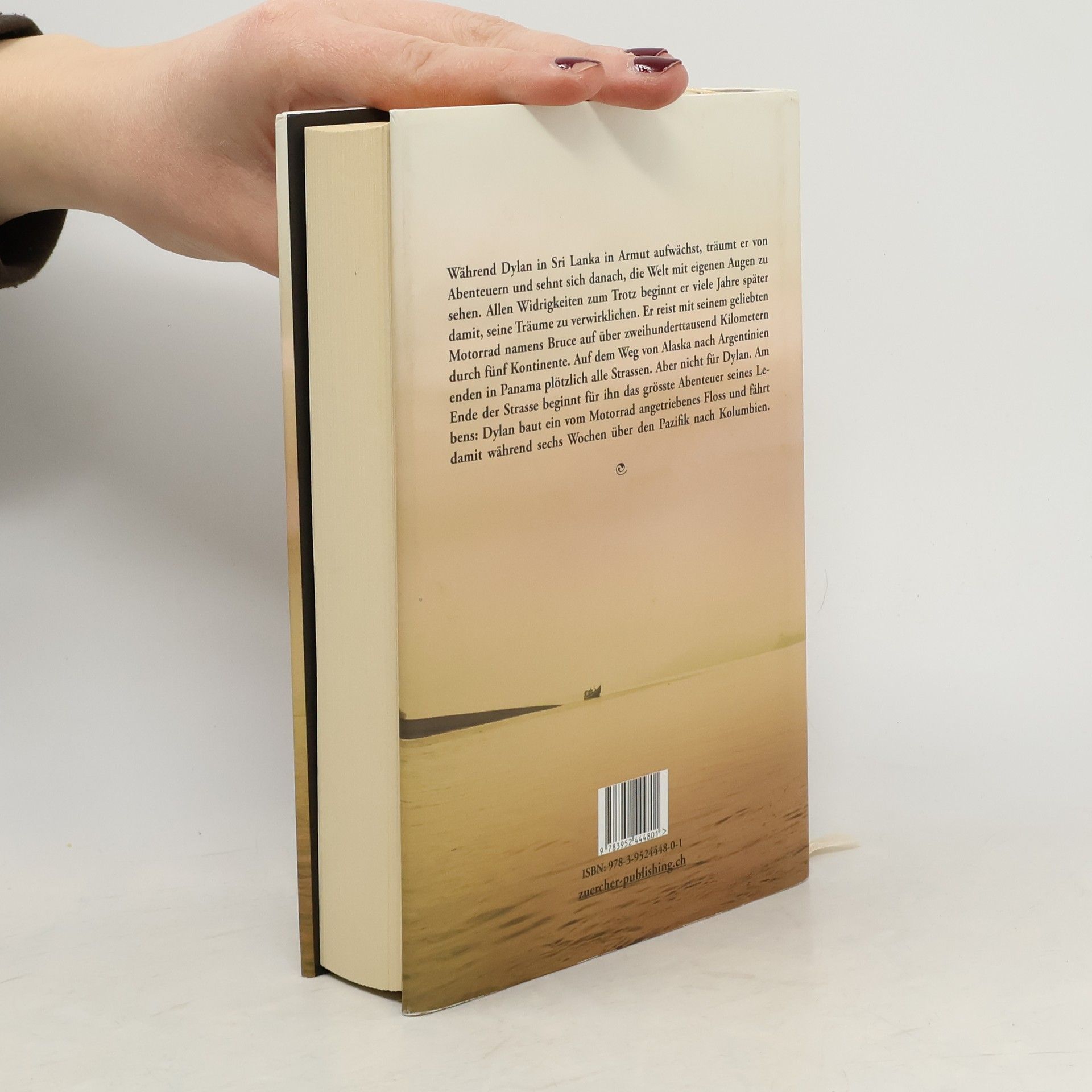 Während Dylan in Sri Lanka in Armut aufwächst, träumt er von Abenteuern und sehnt sich danach, die Welt mit eigenen Augen zu sehen. Allen Widrigkeiten zum Trotz beginnt er viele Jahre später damit, seine Träume zu verwirklichen. Er reist mit seinem geliebten Motorrad namens Bruce auf über zweihunderttausend Kilometern durch fünf Kontinente. Auf dem Weg von Alaska nach Argentinien enden in Panama plötzlich alle Strassen. Aber nicht für Dylan. Am Ende der Strasse beginnt für ihn das grösste Abenteuer seines Lebens: Dylan baut ein vom Motorrad angetriebenes Floss und fährt damit während sechs Wochen über den Pazifik nach Kolumbien. Eine wahre Geschichte, emotional, inspirierend und spannend erzählt. Eine Abenteuer Geschichte, die den Leser in wunderbaren Bildern mit nimmt auf eine Reise um die Welt und übers Meer. Hardcover, gebunden. 352 S., Zürcher-Publishing, 2015
