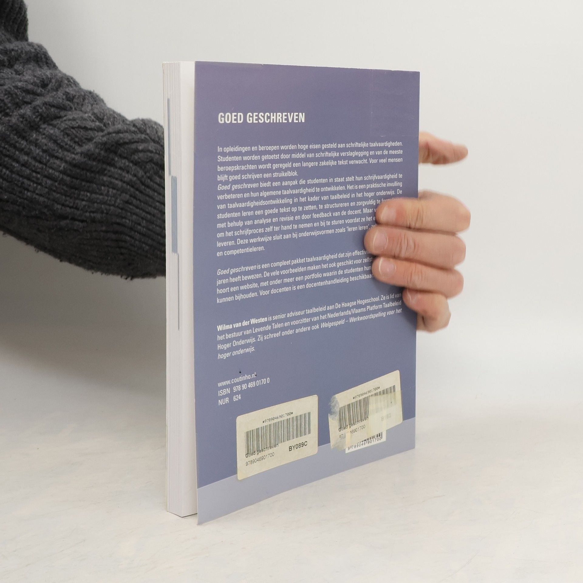 In opleidingen en beroepen worden hoge eisen gesteld aan schriftelijke taalvaardigheden. Studenten worden getoetst door middel van schriftelijke verslaglegging en van de meeste beroepskrachten wordt geregeld een langere zakelijke tekst verwacht. Voor veel mensen blijft goed schrijven een struikelblok. Goed geschreven biedt een aanpak die studenten in staat stelt hun schrijfvaardigheid te verbeteren en hun algemene taalvaardigheid te ontwikkelen. Het is een praktische invulling van taalvaardigheidsontwikkeling in het kader van taalbeleid in het hoger onderwijs. De studenten leren een goede tekst op te zetten, te structureren en zorgvuldig te formuleren met behulp van analyse en revisie en door feedback van de docent. Maar vooral leren ze om het schrijfproces zelf ter hand te nemen en bij te sturen voordat ze het eindproduct afleveren. Deze werkwijze sluit aan bij onderwijsvormen zoals leren leren, zelfstandig leren en competentieleren. Goed geschreven is een compleet pakket taalvaardigheid dat zijn effectiviteit in de afgelopen jaren heeft bewezen. De vele voorbeelden maken het ook geschikt voor zelfstudie. Bij dit boek hoort een website, met onder meer een portfolio waarin de studenten hun leervorderingen kunnen bijhouden. Voor docenten is een docentenhandleiding beschikbaar. Wilma van der Westen is senior adviseur taalbeleid aan De Haagse Hogeschool. Ze is lid van het bestuur van Levende Talen en voorzitter van het Nederlands/Vlaams Platform Taalbeleid Hoger Onderwijs. Zij schreef onder andere ook Welgespeld Werkwoordspelling voor het hoger onderwijs (flaptekst).