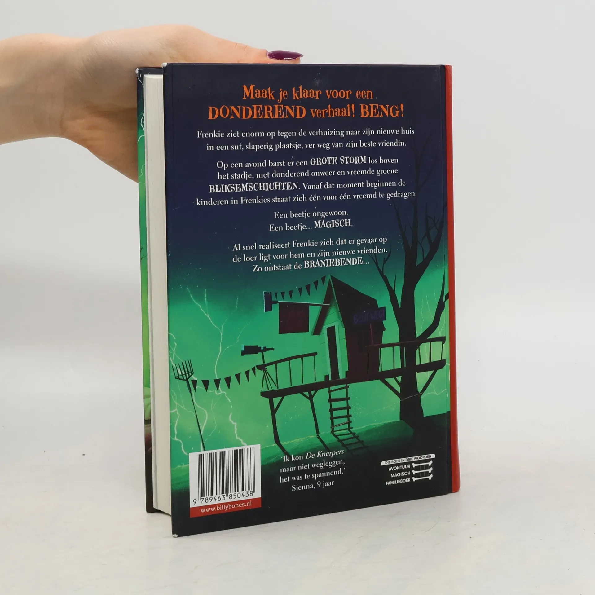 Frenkie ziet enorm op tegen de verhuizing naar zijn nieuwe huis in een suf, slaperig plaatsje, ver weg van zijn beste vriendin. Op een avond barst er een GROTE STORM los boven de stad, met donderend onweer en vreemde groene BLIKSEMSCHICHTEN. Vanaf dat moment beginnen de kinderen in Frenkies straat zich één voor één vreemd te gedragen. Een beetje ongewoon. Een beetje... MAGISCH. Al snel realiseert Frenkie zich dat er gevaar op de loer ligt voor hem en zijn nieuwe vrienden. Zo ontstaat de BRANIEBENDE...