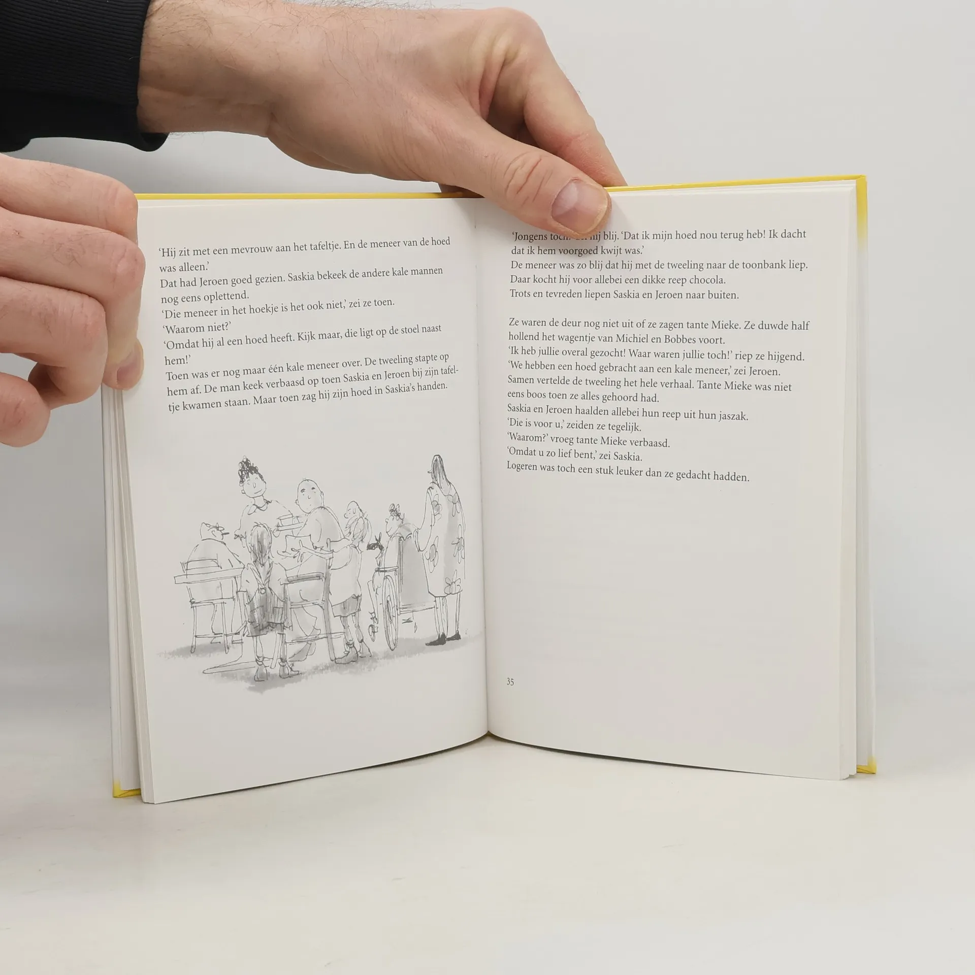 Omdat de zwangere moeder van Saskia en Jeroen in bed moeten blijven nadat ze nogal lelijk gevallen is, gaat de tweeling een tijdje bij tante Mieke in Amsterdam logeren. Als ze na een aantal dagen thuiskomen, is hun broertje Bartje geboren. De tweeling is apetrots en mag na een tijd met Bartje gaan wandelen. Ook organiseren ze een poppenkastvoorstelling en doen wie het langst zijn mond kan houden.