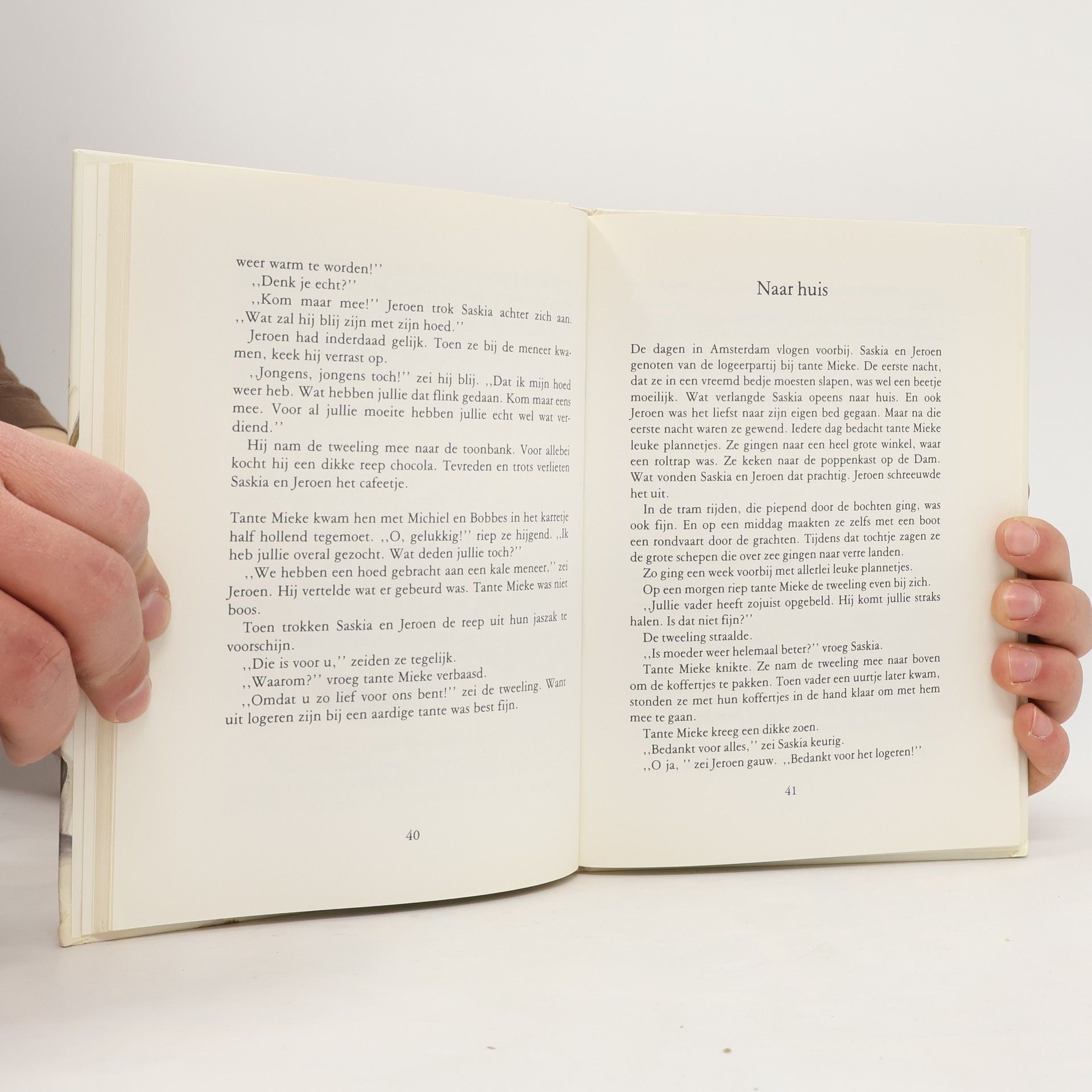 Omdat de zwangere moeder van Saskia en Jeroen in bed moeten blijven nadat ze nogal lelijk gevallen is, gaat de tweeling een tijdje bij tante Mieke in Amsterdam logeren. Als ze na een aantal dagen thuiskomen, is hun broertje Bartje geboren. De tweeling is apetrots en mag na een tijd met Bartje gaan wandelen. Ook organiseren ze een poppenkastvoorstelling en doen wie het langst zijn mond kan houden.
