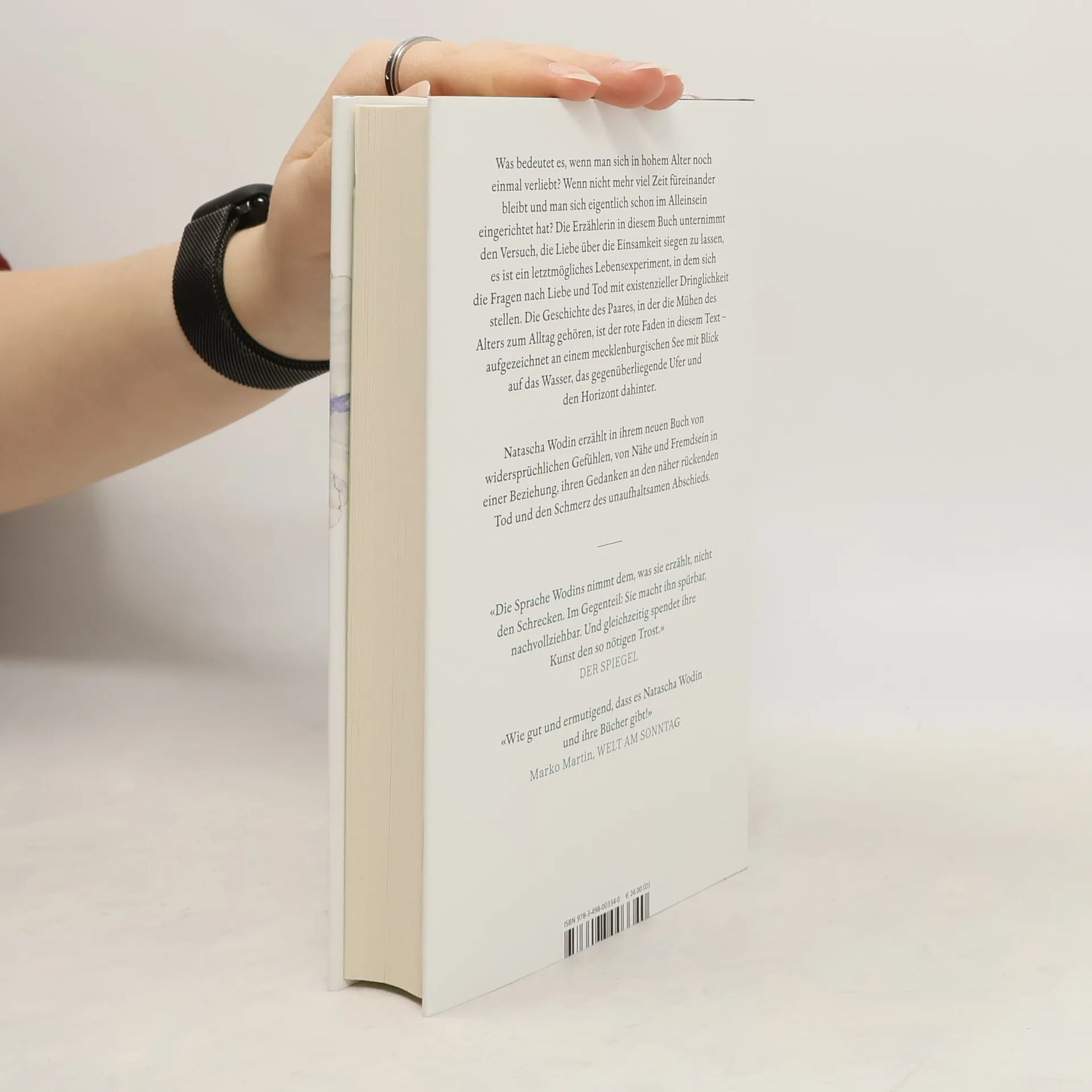 «Wie gut und ermutigend, dass es Natascha Wodin und ihre Bücher gibt!» Marko Martin, Welt am Sonntag Was bedeutet es, wenn man sich in hohem Alter noch einmal verliebt? Wenn nicht mehr viel Zeit füreinander bleibt und man sich eigentlich schon im Alleinsein eingerichtet hat? In Natascha Wodins neuem Buch wagt die Erzählerin den Versuch, die Liebe über die Einsamkeit siegen zu lassen, ein letztmögliches Lebensexperiment, in dem sich die Fragen nach Liebe und Tod mit existenzieller Dringlichkeit stellen und die Mühen des Alters zum Alltag gehören. Die Geschichte des Paares ist der rote Faden im Text, einem Gewebe aus Erinnerungen, Reflexionen, Beobachtungen – aufgezeichnet an einem mecklenburgischen Sees mit Blick auf das Wasser und den gegenüberliegenden Horizont. Natascha Wodin erzählt berührend, ehrlich und poetisch über widersprüchliche Gefühle, über Nähe und Fremdsein in einer Beziehung, ihre Gedanken an den näherrückenden Tod und den Schmerz des unaufhaltsamen Abschieds. «Die Sprache Wodins nimmt dem, was sie erzählt, nicht den Schrecken. Im Gegenteil: Sie macht ihn spürbar, nachvollziehbar. Und gleichzeitig spendet ihre Kunst den so nötigen Trost.» Der Spiegel