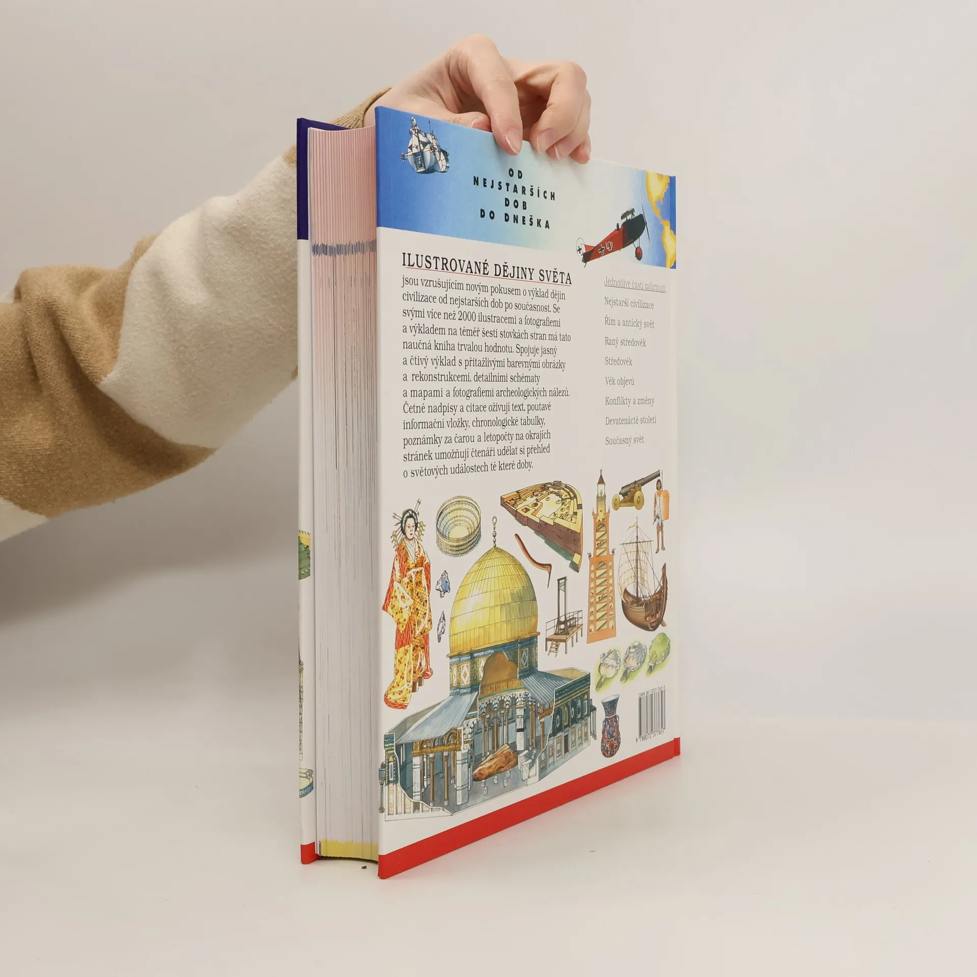 Ilustrované dějiny světa jsou vzrušujícím novým pokusem o výklad dějin civilizace od nejstarších dob po současnost. Se svými více než 2000 ilustracemi a fotografiemi a výkladem na téměř šesti stovkách stran má tato naučná kniha trvalou hodnotu. Spojuje jasný a čtivý výklad s přitažlivými barevnými obrázky a rekonstrukcemi, detailními schématy a mapami a fotografiemi archeologických nálezů.Četné nadpisy a citace oživují text, poutavé informační vložky, chronologické tabulky, poznámky za čarou a letopočty na okrajích stránek umožňují čtenáři udělat si přehled o světových událostech té které doby. (obálka knihy)