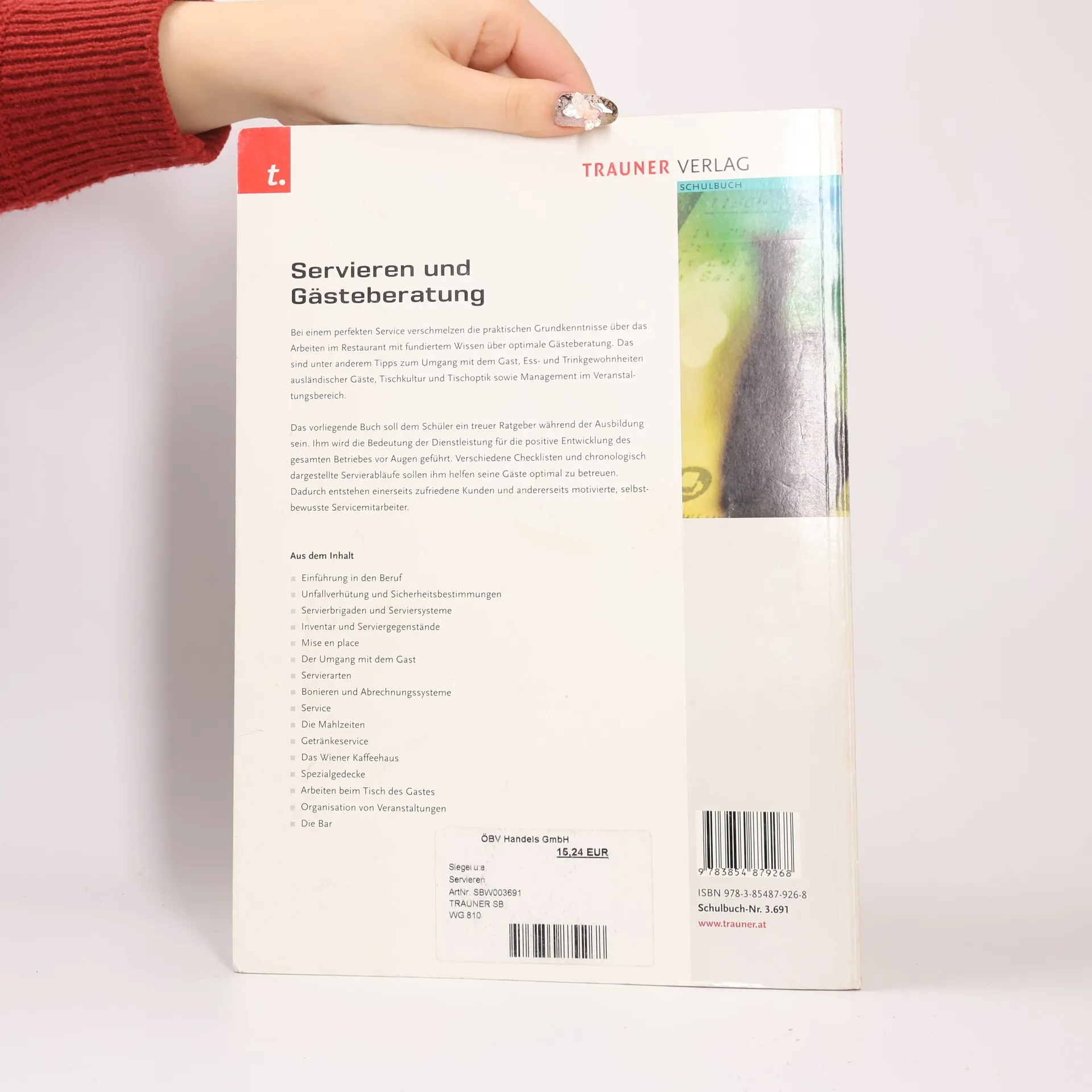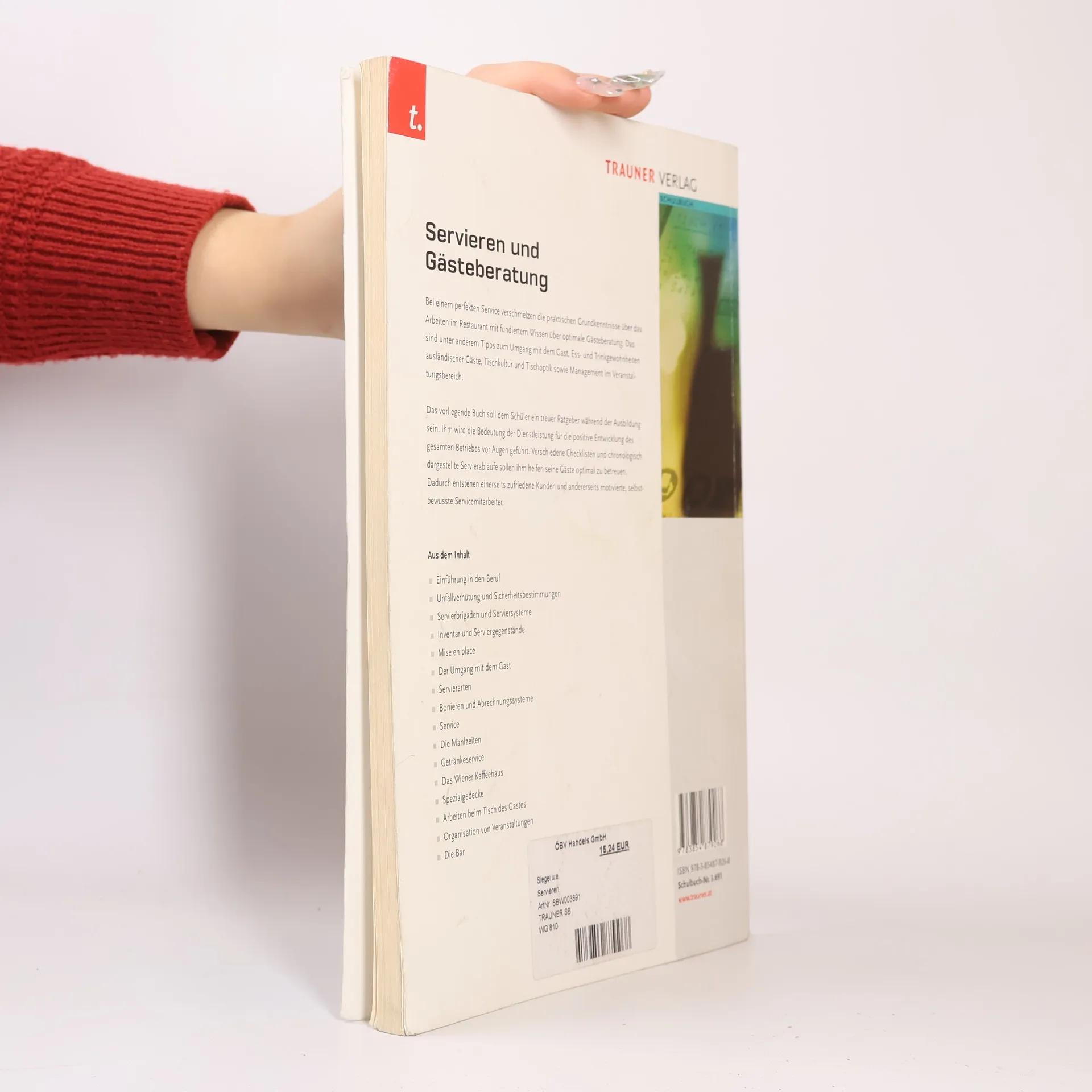 Bei einem perfekten Service verschmelzen die praktischen Grundkenntnisse über das Arbeiten im Restaurant mit fundiertem Wissen über optimale Gästeberatung. Das sind unter anderem Tipps zum Umgang mit dem Gast, Ess- und Trinkgewohnheiten ausländischer Gäste, Tischkultur und Tischoptik sowie Management im Veranstaltungsbereich. Das vorliegende Buch soll dem Schüler ein treuer Ratgeber während der Ausbildung sein. Ihm wird die Bedeutung der Dienstleistung für die positive Entwicklung des gesamten Betriebes vor Augen geführt. Verschiedene Checklisten und chronologisch dargestellte Servierabläufe sollen ihm helfen seine Gäste optimal zu betreuen. Dadurch entstehen einerseits zufriedene Kunden und andererseits motivierte, selbstbewusste Servicemitarbeiter. Aus dem Inhalt: -Einführung in den Beruf -Unfallverhütung und Sicherheitsbestimmungen -Servierbrigaden und Serviersysteme -Inventar und Serviergegenstände -Mise en place -Der Umgang mit dem Gast -Servierarten -Bonieren und Abrechungssysteme -Service -Die Mahlzeiten -Getränkeservice -Das Wiener Kaffeehaus -Spezialgedecke -Arbeiten beim Risch des Gastes -Organisation von Veranstaltungen -Die Bar