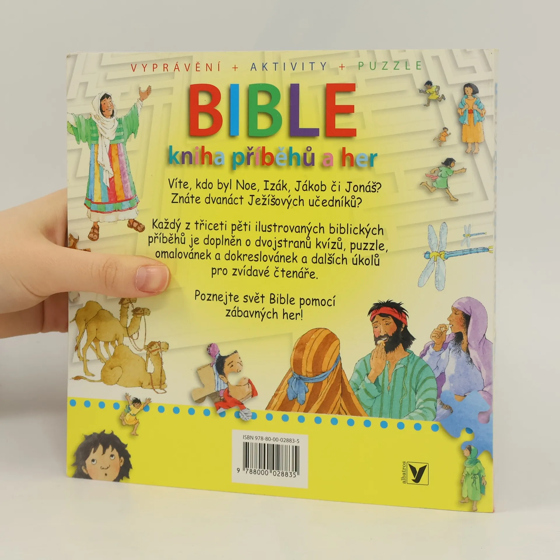 Víte, kdo byl Noe, Izák, Jákob či Jonáš? Znáte dvanáct Ježíšových učedníků? Každý z třiceti pěti ilustrovaných biblických příběhů je doplněn o dvojstranů kvízů, puzzle, omalovánek a dokreslovánek a dalších úkolů pro zvídavé čtenáře. Poznejte svět Bible pomocí zábavných her!