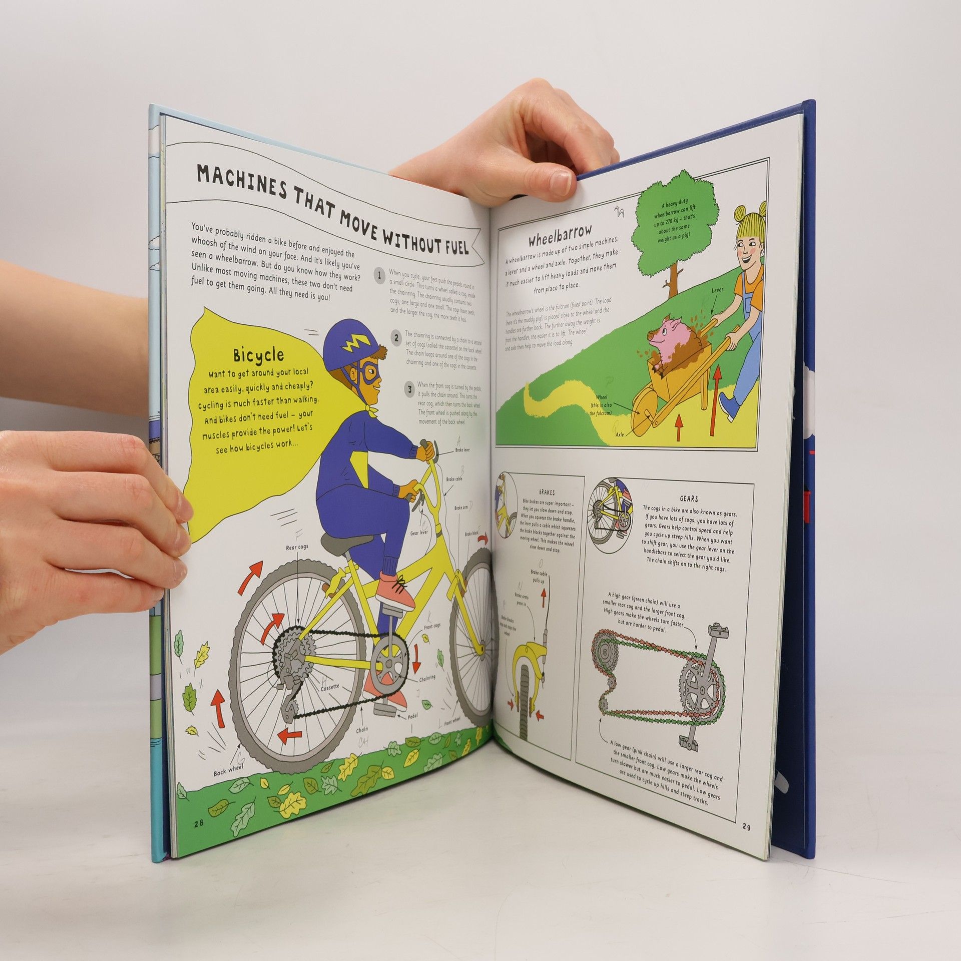 How does a train stay on the tracks? What’s going on inside a pogo stick? How do cranes work? And what happens when you flush a toilet? These and many more important questions are answered in this fascinating book. From toasters and telephones to hovercrafts and robots – the inner workings of machines big and small are brought to light using a stunning mix of cross-sections, close-ups and cutaways.