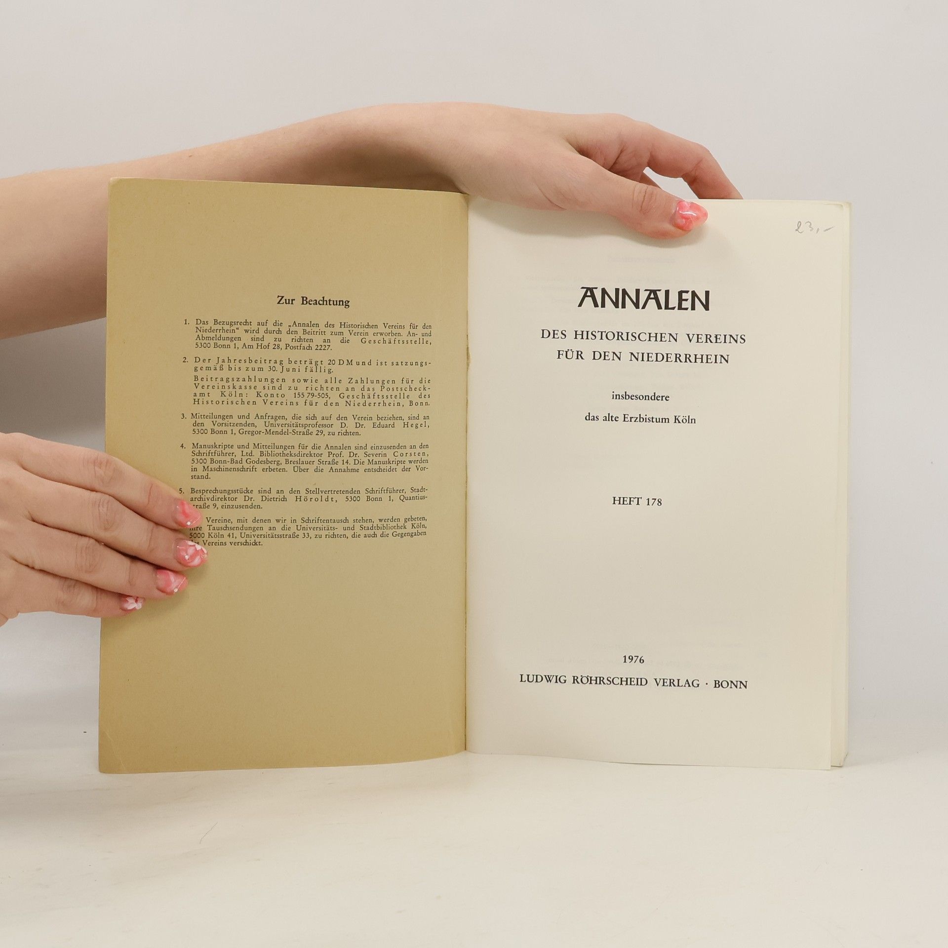 Von Annalen des Historischen Vereins für den Niederrhein. Heft 178 (1976) sind aktuell auf Lager verfügbar.