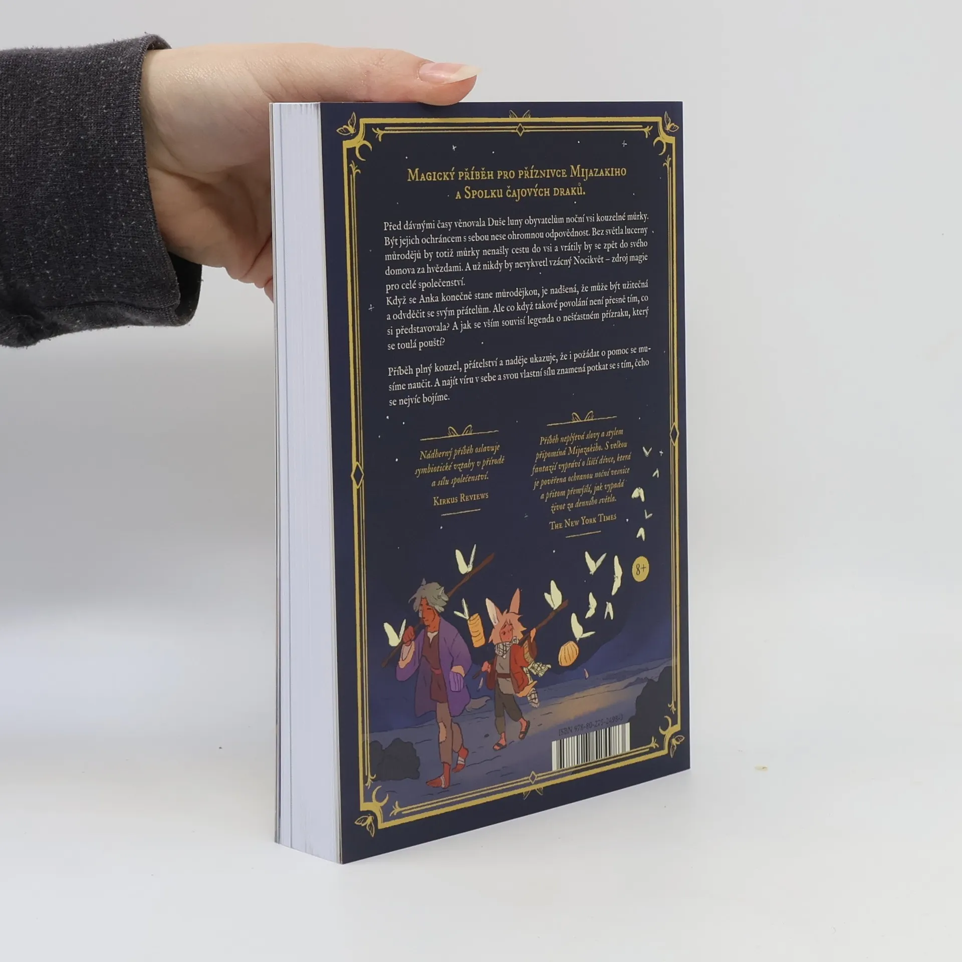 Magický příběh pro příznivce Mijazakiho a Spolku čajových draků. Před dávnými časy věnovala Duše luny obyvatelům noční vsi kouzelné můrky. Být jejich ochráncem s sebou nese ohromnou odpovědnost. Bez světla lucerny můrodějů by totiž můrky nenašly cestu do vsi a vrátily by se zpět do svého domova za hvězdami. A už nikdy by nevykvetl vzácný Nocikvět – zdroj magie pro celé společenství. Když se Anka konečně stane můrodějkou, je nadšená, že může být užitečná a odvděčit se svým přátelům. Ale co když takové povolání není přesně tím, co si představovala? A jak se vším souvisí legenda o nešťastném přízraku, který se toulá pouští? Příběh plný kouzel, přátelství a naděje ukazuje, že i požádat o pomoc se musíme naučit. A najít víru v sebe a svou vlastní sílu znamená potkat se s tím, čeho se nejvíc bojíme.