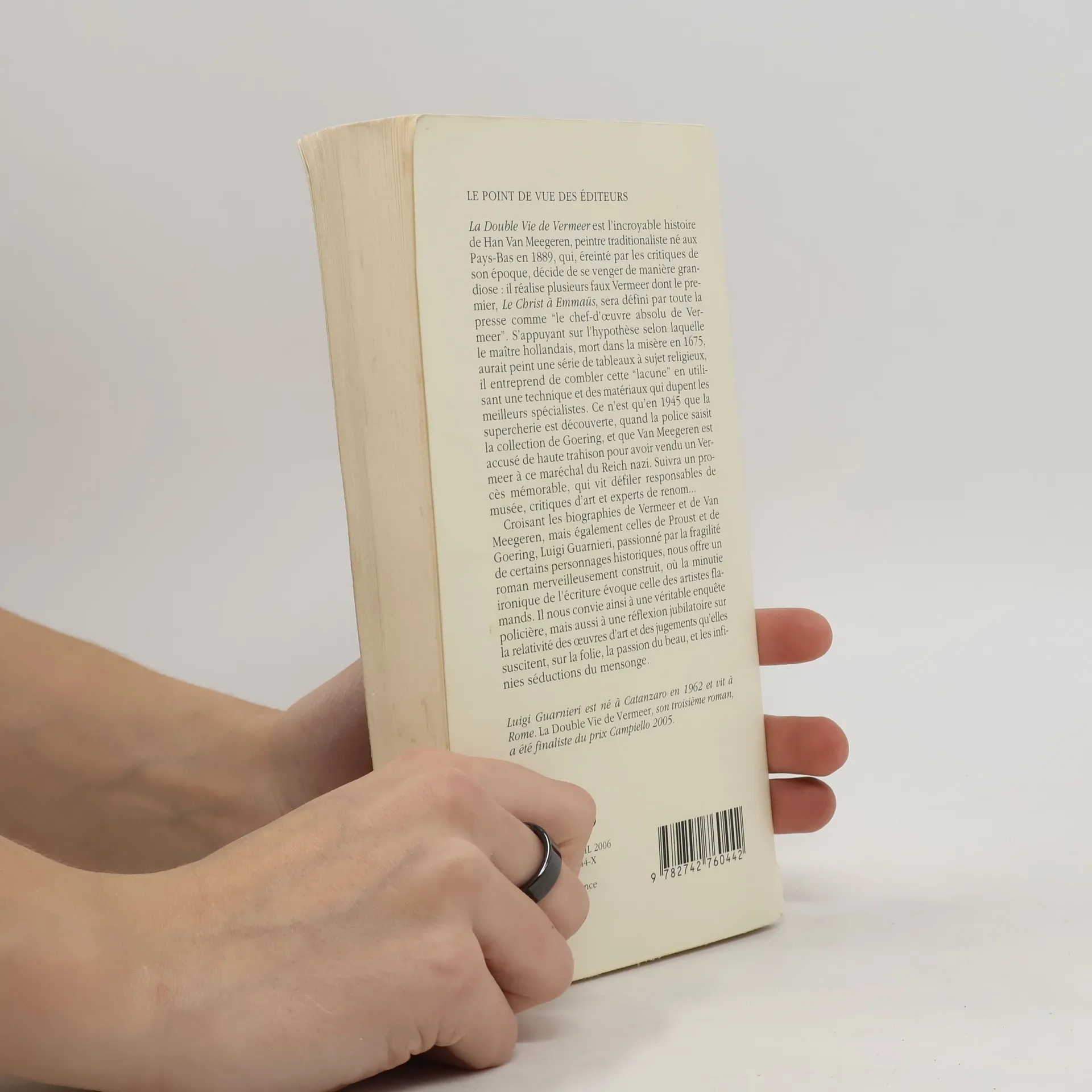 Au début du XXe siècle, le peintre Han van Meegeren est blessé du peu de considération pour ses peintures, jugées trop académiques. Il étudie l'oeuvre de Vermeer et peint des faux Vermeer sur des thèmes religieux. La supercherie n'est découverte qu'à la fin de la Seconde Guerre mondiale quand, pour se disculper d'avoir vendu à Goering un authentique Vermeer, il se démasque. Prix Campiello 2005.
