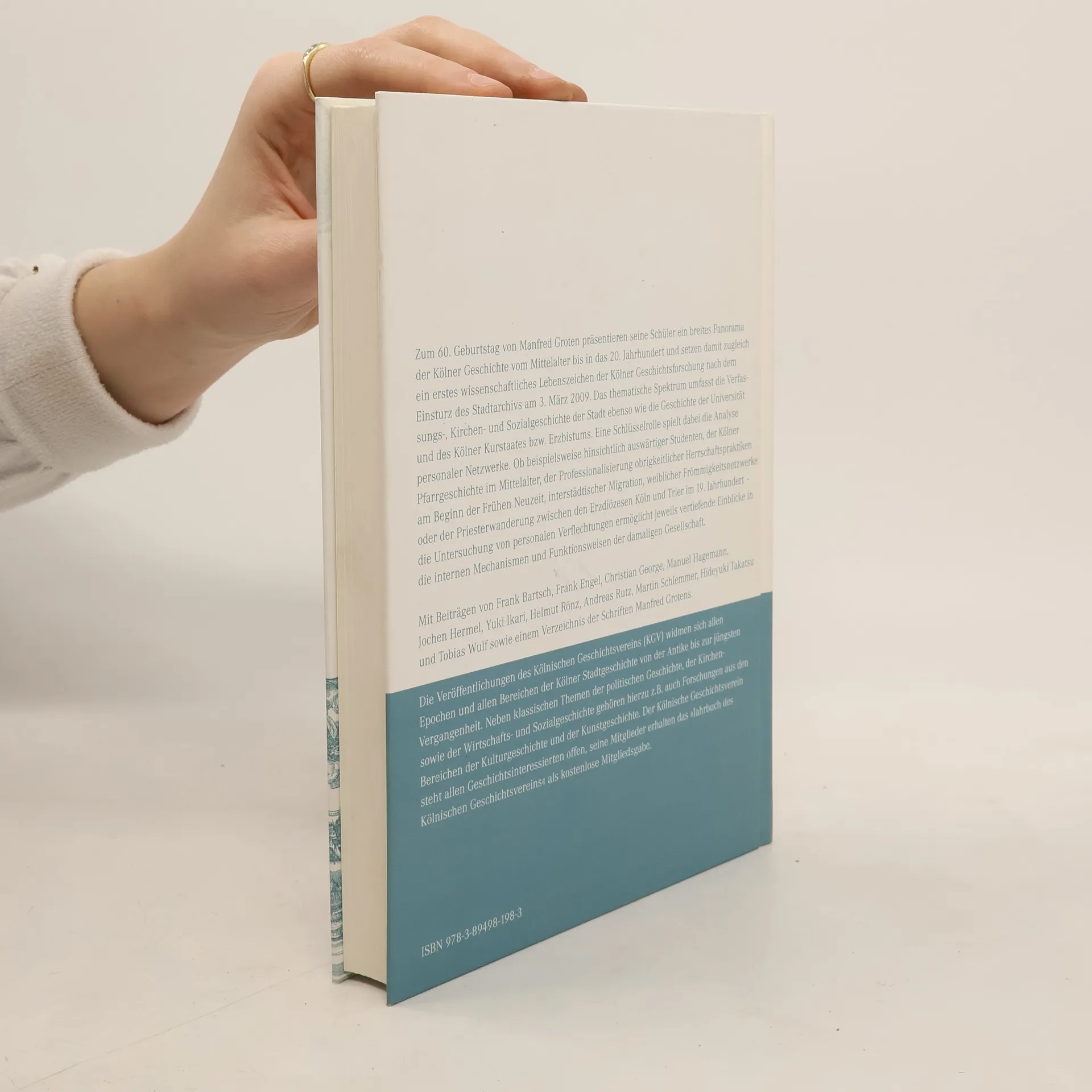 Zum 60. Geburtstag von Manfred Groten prasentieren seine Schuler ein breites Panorama der Kolner Geschichte vom Mittelalter bis in das 20. Jahrhundert und setzen damit zugleich ein erstes wissenschaftliches Lebenszeichen der Kolner Geschichtsforschung nach dem Einsturz des Stadtarchivs am 3. Marz 2009. Das thematische Spektrum umfasst die Verfassungs-, Kirchen- und Sozialgeschichte der Stadt ebenso wie die Geschichte der Universitat und des Kolner Kurstaates bzw. Erzbistums. Eine Schlusselrolle spielt dabei die Analyse personaler Netzwerke. Ob hinsichtlich auswartiger Studenten, der Kolner Pfarrgeschichte im Mittelalter, der Professionalisierung obrigkeitlicher Herrschaftspraktiken am Beginn der Fruhen Neuzeit, interstadtischer Migration, weiblicher Frommigkeitsnetzwerke oder der Priesterwanderung zwischen den Erzdiozesen Koln und Trier im 19. Jahrhundert - die Untersuchung von personalen Verflechtungen ermoglicht jeweils vertiefende Einblicke in die internen Mechanismen und Funktionsweisen der damaligen Gesellschaft.