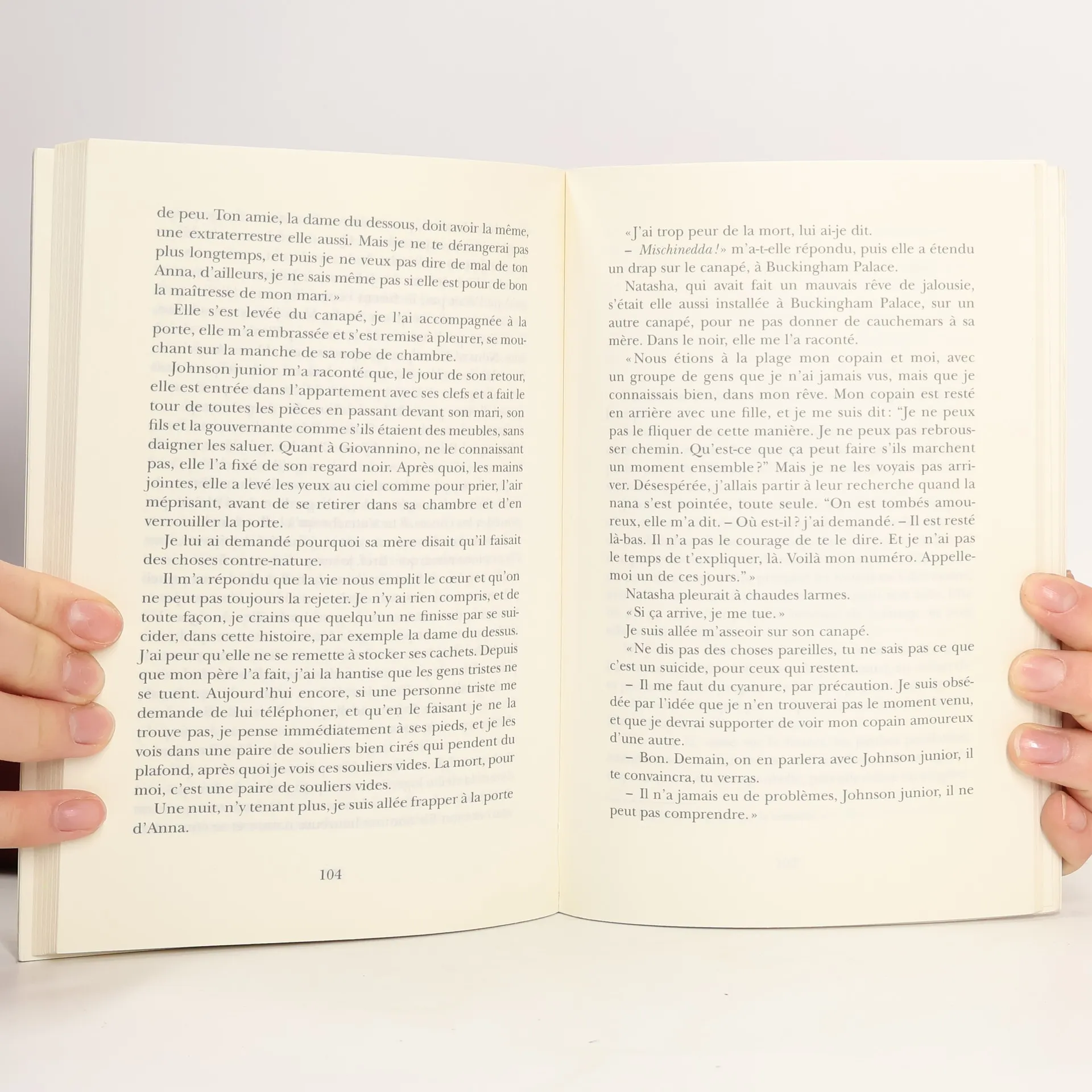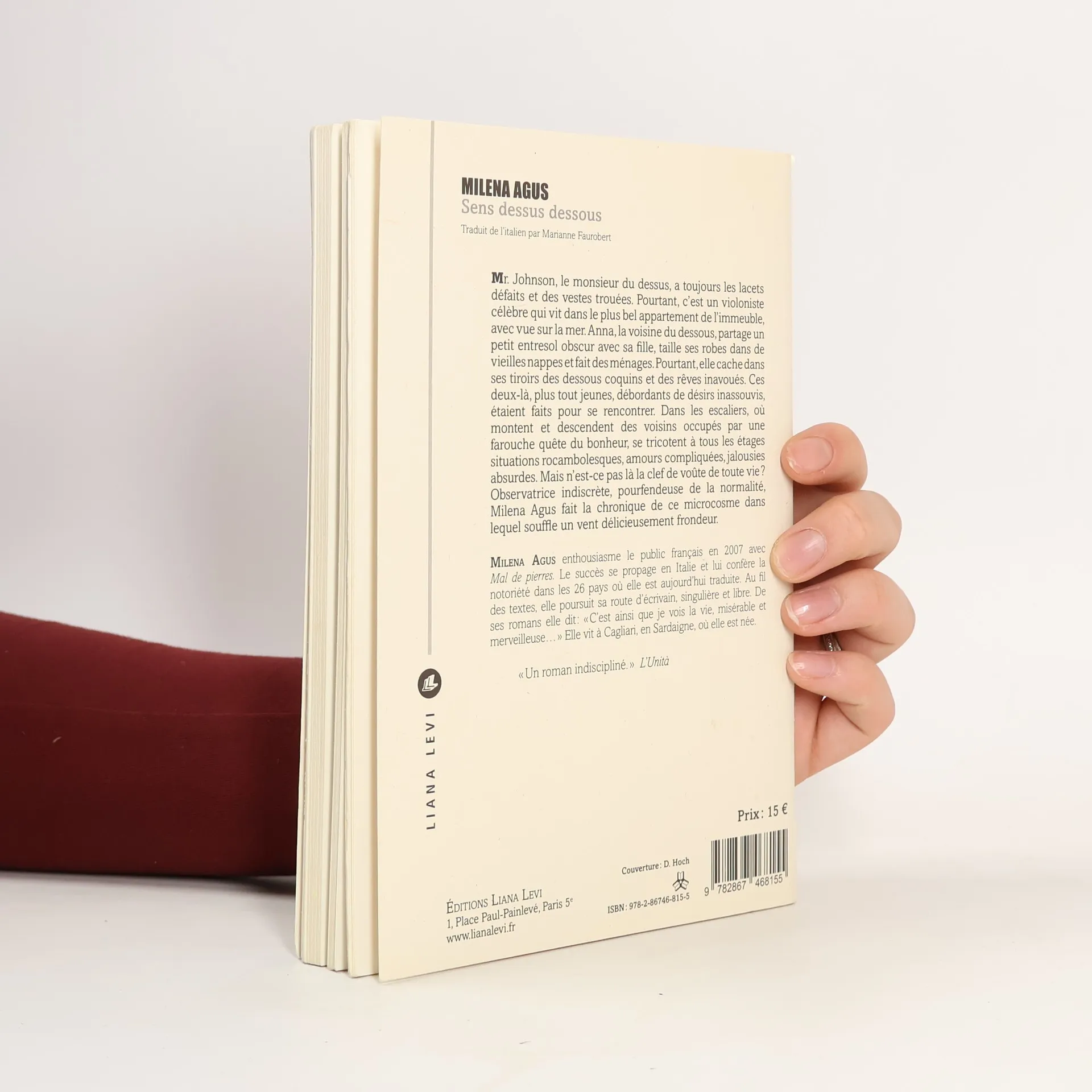 Mr. Johnson, le monsieur du dessus, a toujours les lacets défaits et des vestes trouées. Pourtant, c’est un violoniste célèbre qui vit dans le plus bel appartement de l’immeuble, avec vue sur la mer. Anna, la voisine du dessous, partage un petit entresol obscur avec sa fille, taille ses robes dans de vieilles nappes et fait des ménages. Pourtant, elle cache dans ses tiroirs des dessous coquins et des rêves inavoués. Ces deux-là, plus tout jeunes, débordants de désirs inassouvis, étaient faits pour se rencontrer. Dans les escaliers, où montent et descendent des voisins occupés par une farouche quête du bonheur, se tricotent à tous les étages situations rocambolesques, amours compliquées, jalousies absurdes. Mais n’est-ce pas là la clef de voûte de toute vie ? Observatrice indiscrète, pourfendeuse de la normalité, Milena Agus fait la chronique de ce microcosme dans lequel souffle un vent délicieusement frondeur.