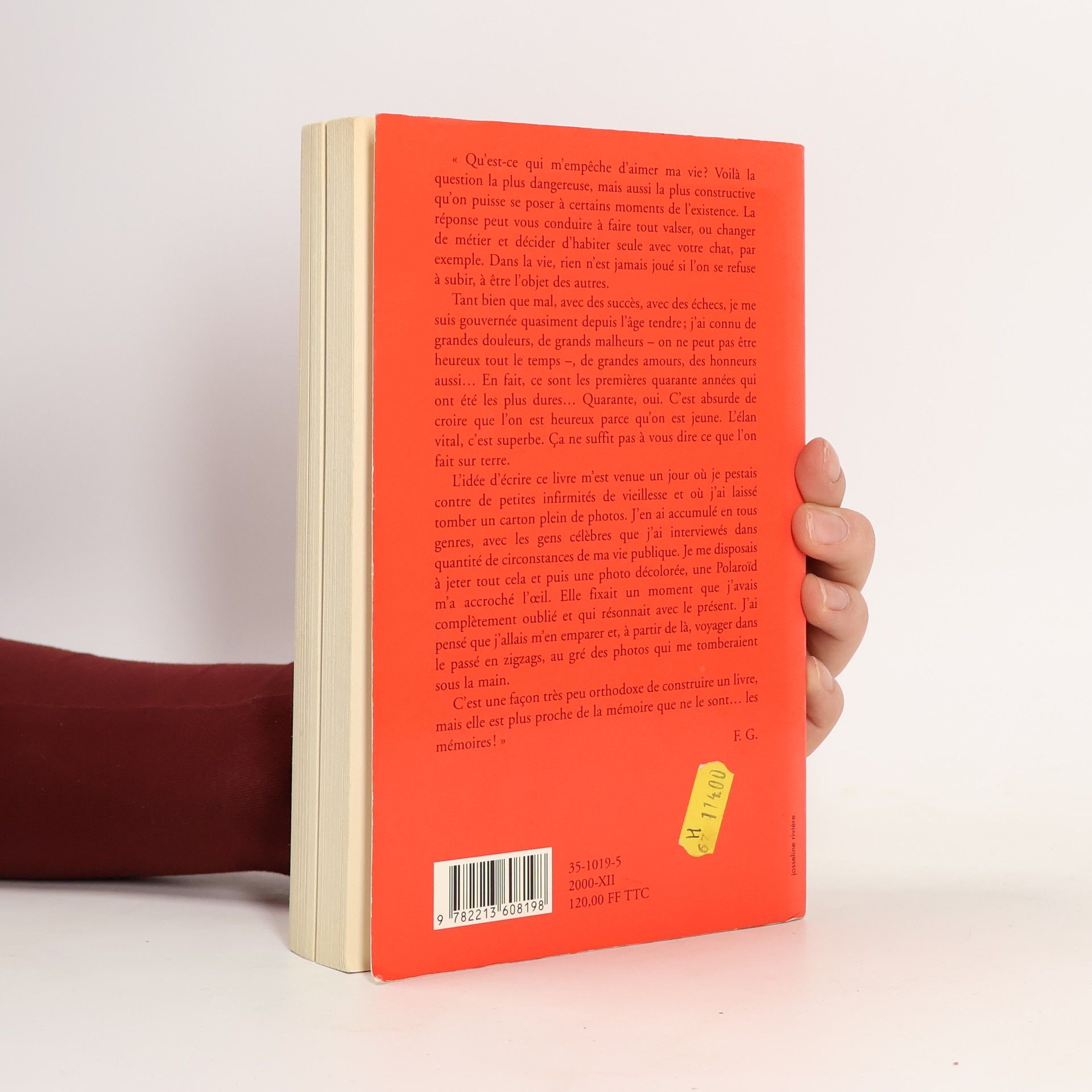 " Qu'est-ce qui m'empêche d'aimer ma vie ? Voilà la question la plus dangereuse, mais aussi la plus constructive qu'on puisse se poser à certains moments de l'existence. la réponse peut vous conduire à faire tout valser, ou changer de métier et décider d'habiter seule avec votre chat, par exemple. Dans la vie, rien n'est jamais joué si l'on se refuse à subir, à être l'objet des autres. Tant bien que mal, avec des succès, avec des échecs, je me suis gouvernée quasiment depuis l'âge tendre ; j'ai connu de grandes douleurs, de grands malheurs - on ne peut pas être heureux tout le temps -, de grands amours, des honneurs aussi... En fait, ce sont les premières quarante années qui ont été les plus dures... Quarante, oui. C'est absurde de croire que l'on est heureux parce qu'on est jeune. L'élan vital, c'est superbe. Ca ne suffit pas à vous dire ce que l'on fait sur terre. L'idée d'écrire ce livre m'est venue un jour où je pestais cotre de petites infirmités de vieillesse et où j'ai laissé tomber un carton plein de photos. J'en ai accumulé en tous genres, avec les gens célèbres que l'ai interviewés dans quantité de circonstances de ma vie publique. Je me disposais à jeter tout cela et puis une photo décolorée, une Polaroïd m'a accroché l'œil. elle fixait un moment que j'avais complètement oublié et qui résonnait avec le présent. J'ai pensé que j'allais m'en emparer et, à partir de là, voyager dans le passé en zigzags, au gré des photos qui me tomberaient sous la main. C'est une façon très peu orthodoxe de construire un livre, mais elle est plus proche de la mémoire que ne le sont... les mémoires ! "
