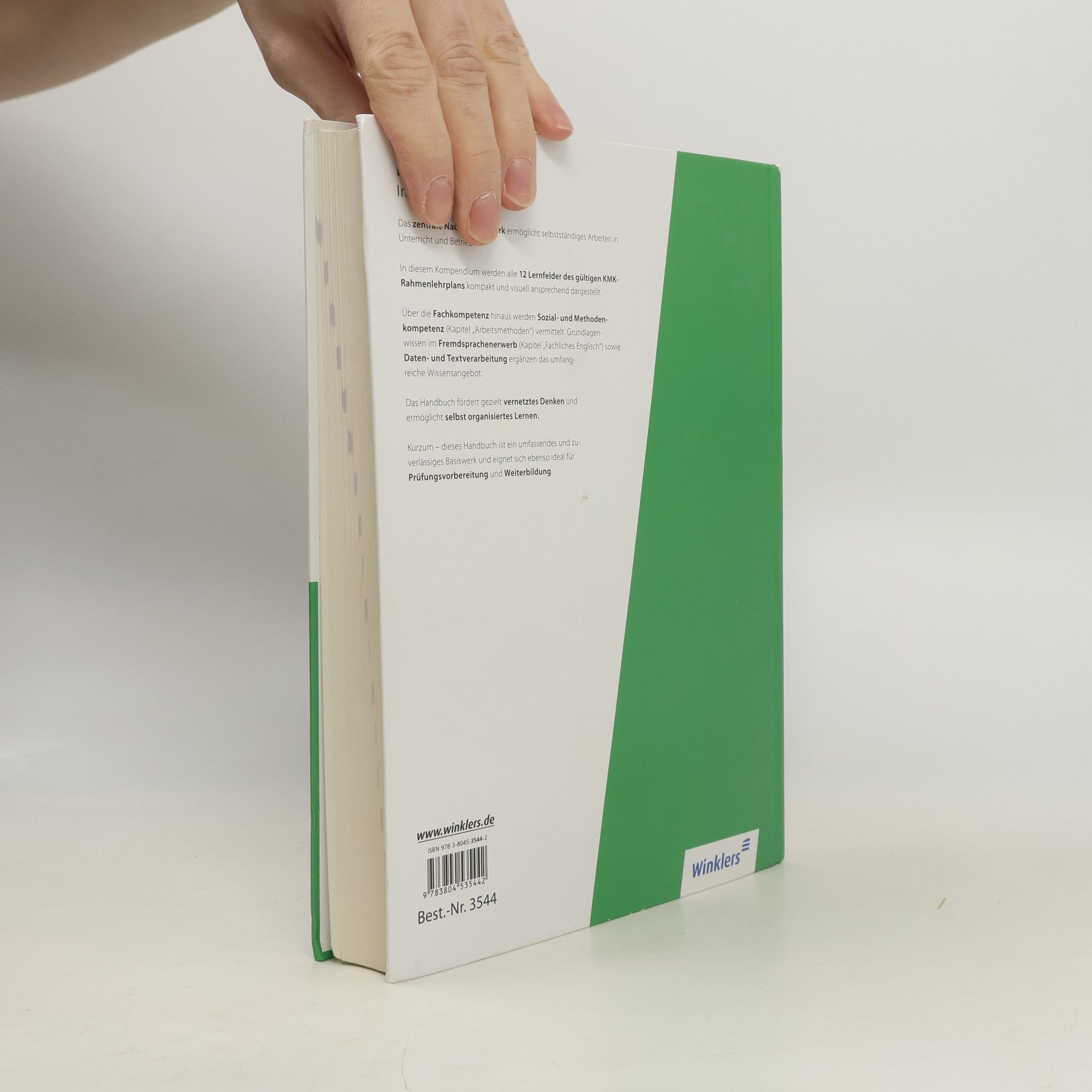 Das zentrale Nachschlagewerk ermöglicht selbstständiges Arbeiten in Unterricht, Betrieb und zu Hause. In diesem Kompendium werden alle 12 Lernfelder des KMK-Rahmenlehrplans kompakt und visuell ansprechend dargestellt. Über die Fachkompetenz hinaus werden Sozial- und Methodenkompetenz (Kapitel „Arbeitsmethoden“) vermittelt. Grundlagenwissen im Fremdsprachenerwerb (Kapitel „Fachliches Englisch“) sowie zu Daten- und Textverarbeitung ergänzen das umfangreiche Wissensangebot. Kurzum - dieses Handbuch ist ein umfassendes und zuverlässiges Basiswerk und eignet sich ideal für das Lernen, die gezielte Prüfungsvorbereitung und in der Weiterbildung. Ein Begleiter in der Ausbildung und im Beruf.